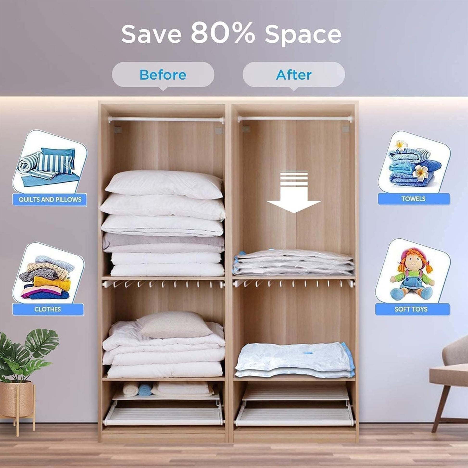 • EFFICIENT SPACE MANAGEMENT: Effortlessly use the included hand pump to remove air, creating extra space to store your items securely.