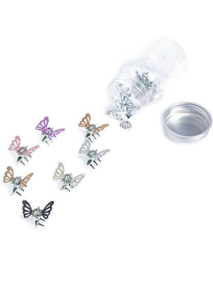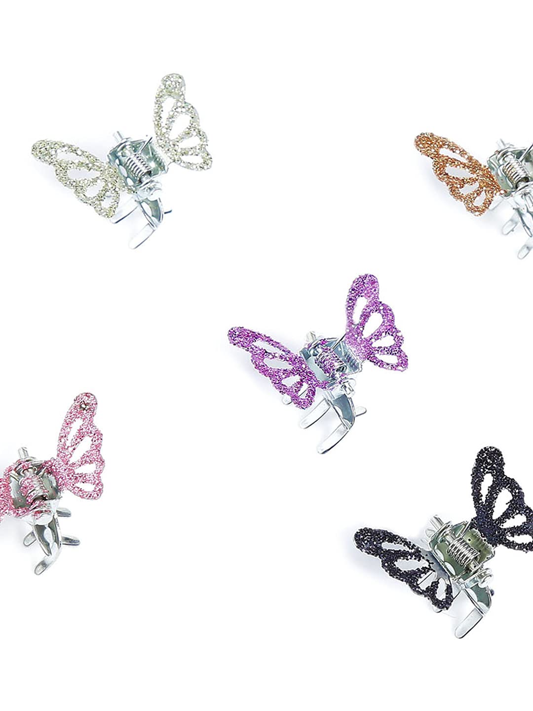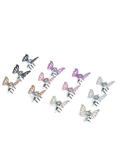 Introducing the Melbees by Yellow Chimes Hair Clips, featuring a delightful selection of 12 mini glittering butterfly claw clips. Made of premium soft metal, these clips are designed with the utmost care, ensuring they are gentle on the scalp while offering rust resistance and durability. Each clip measures 1.4 cm in length and 2 cm in width, making them the perfect size for holding hair securely without slipping out.