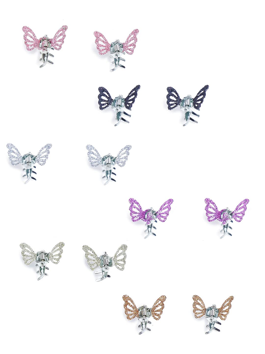 Melbees by Yellow Chimes Hair Clips for Girls Kids Hair Accessories for Girls Hair Claw Clips for Girls Kids Multicolor Glittering Butterfly Claw Clip 12 Pcs Mini Hair Claw Clips for Girls Kids Clutchers for Hair