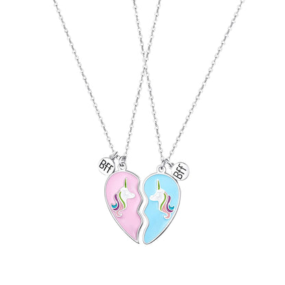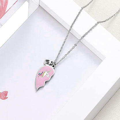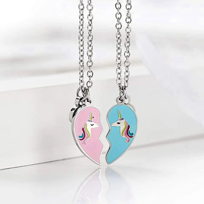 Melbees by Yellow Chimes Pendant Necklace for Kids and Girls Charm Necklaces | 2Pcs Combo of BFF Bestfriend Heart and Unicorn Charm Pendant Necklace | Birthday Gift For Kids and Girls