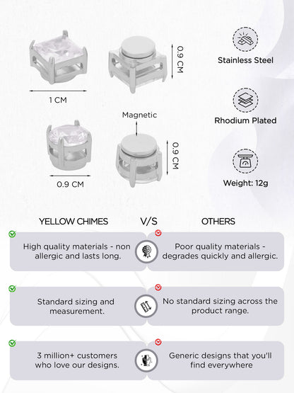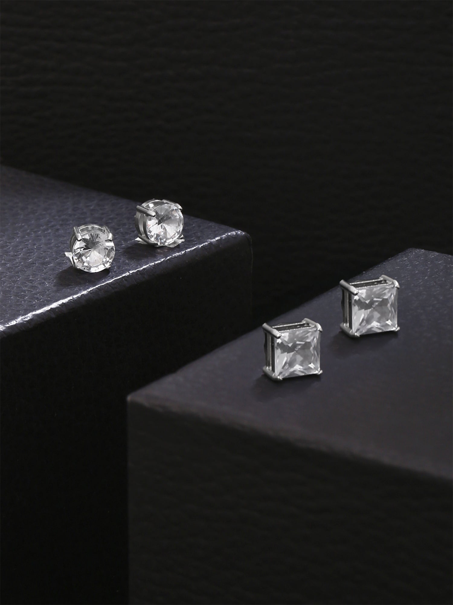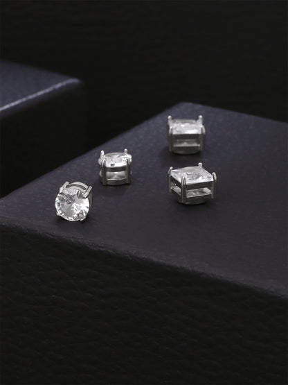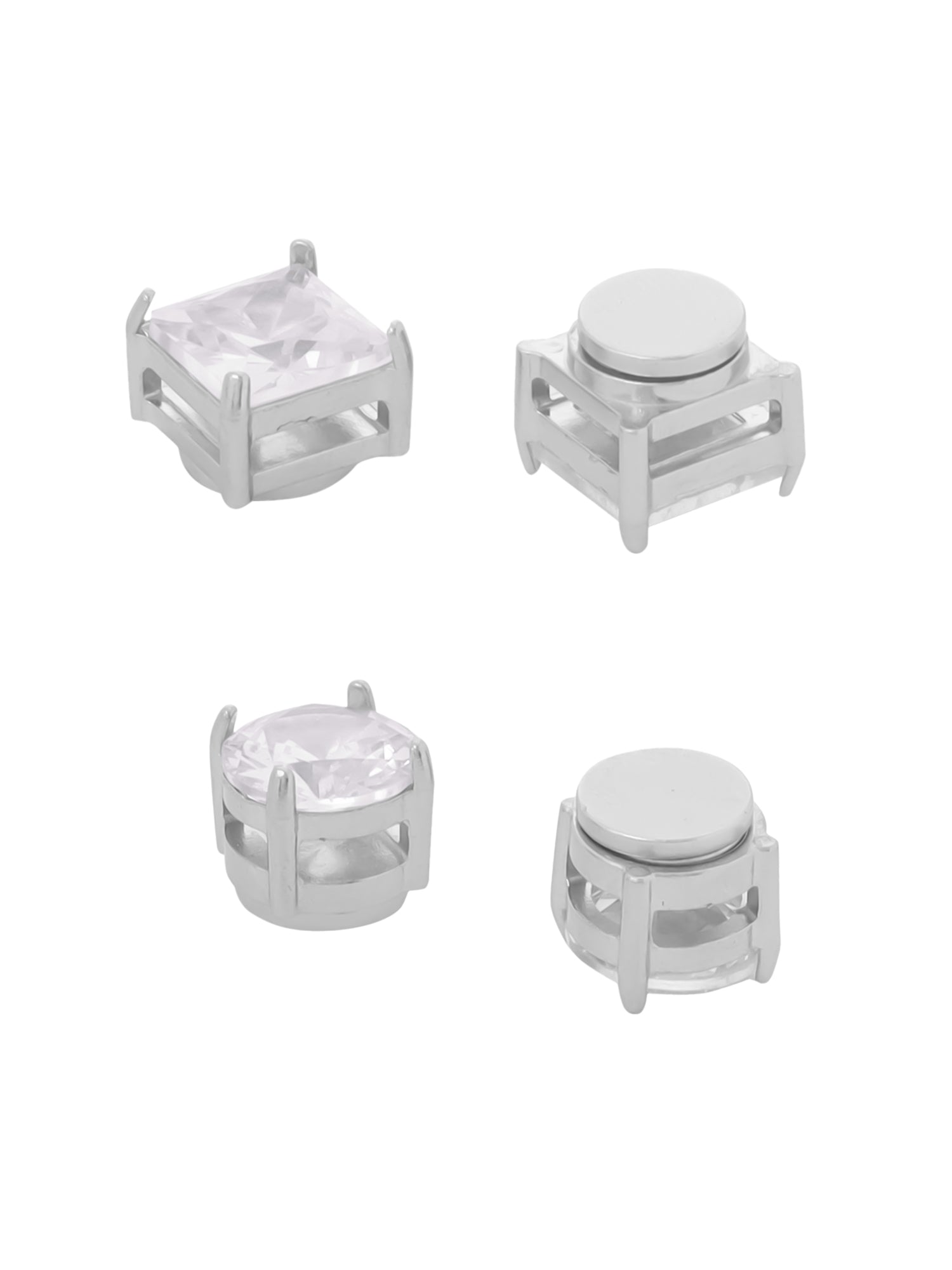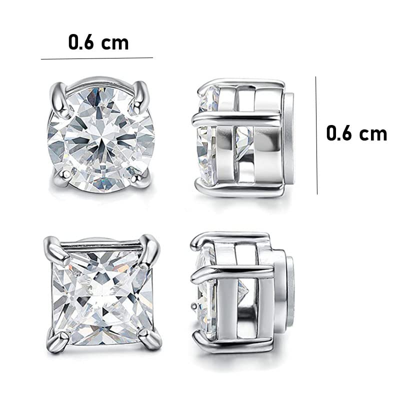 Combo of 2 Pairs: Magnetic Non-Piercing Stud Earrings | 0.6 cm | White Cubic Zirconia | Silver Tone