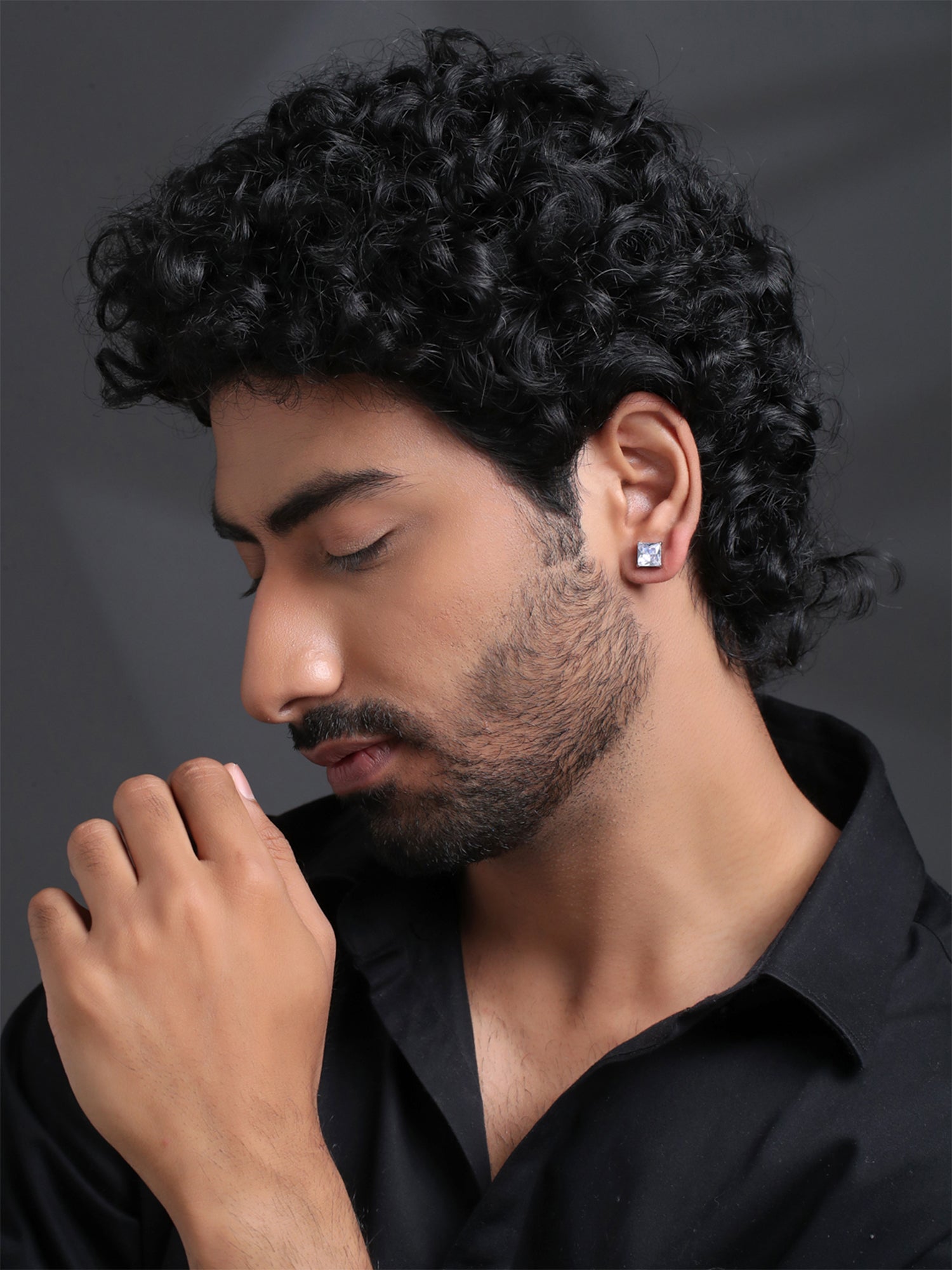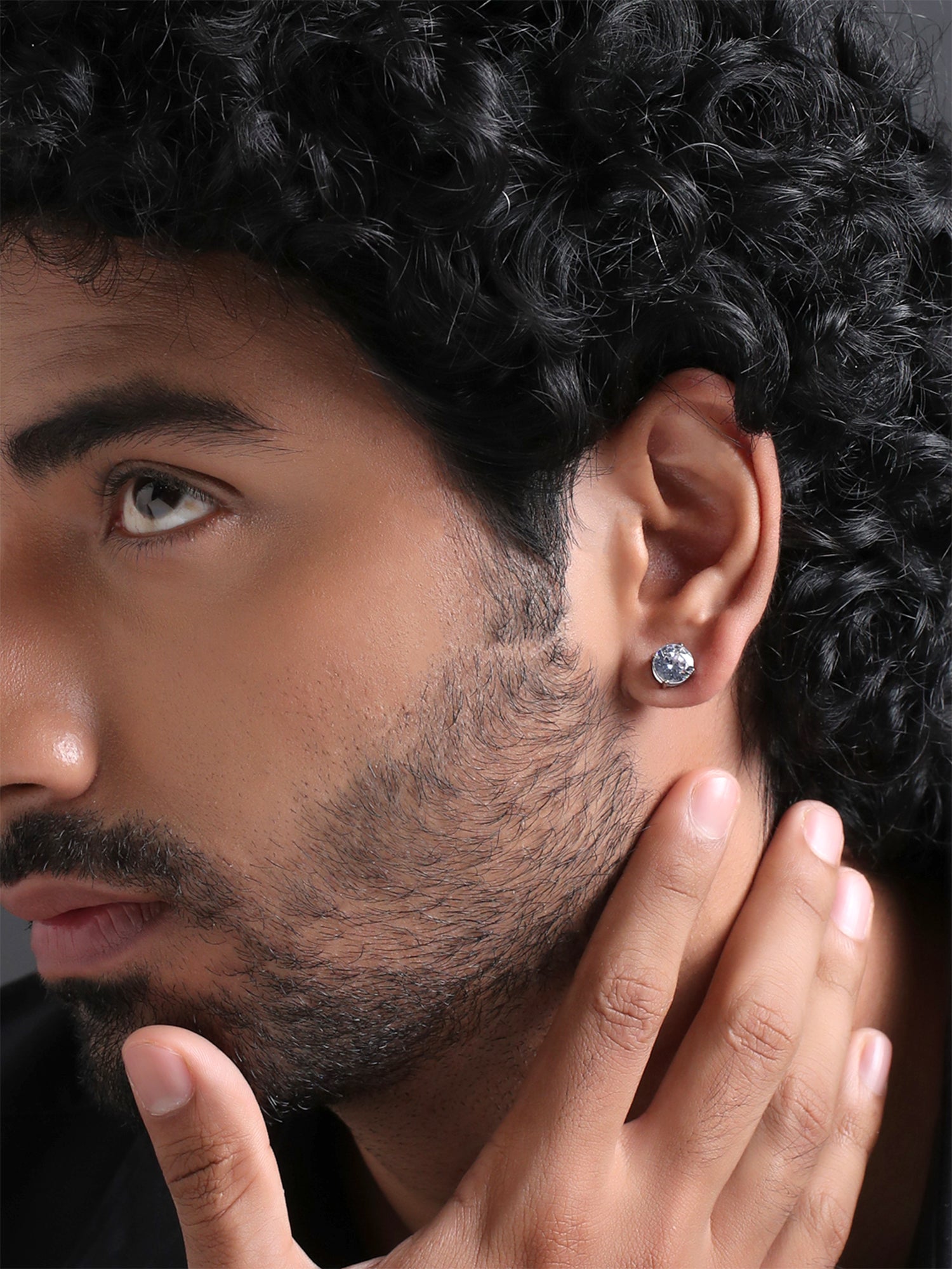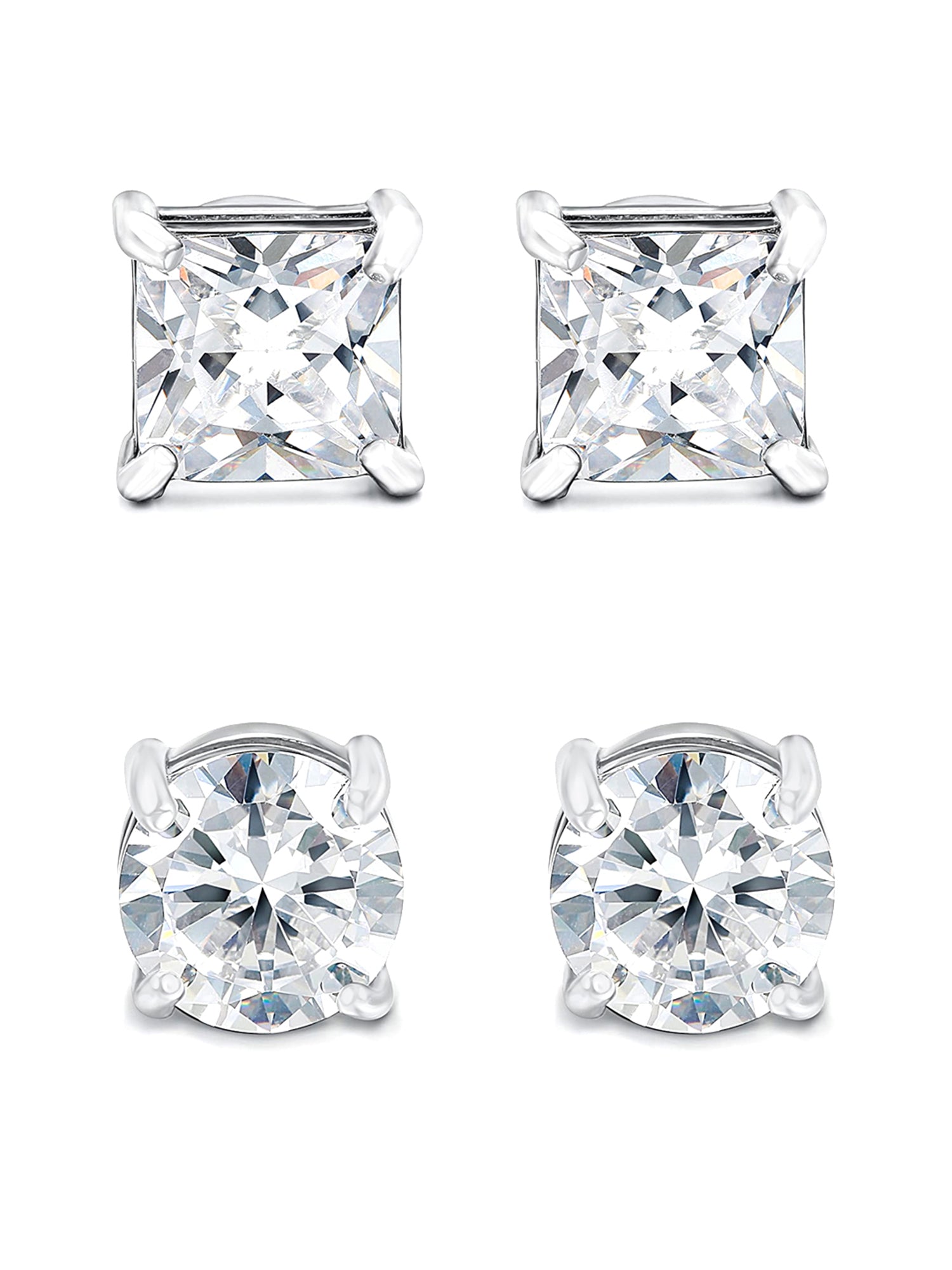 Combo of 2 Pairs: Magnetic Non-Piercing Stud Earrings | 0.6 cm | White Cubic Zirconia | Silver Tone