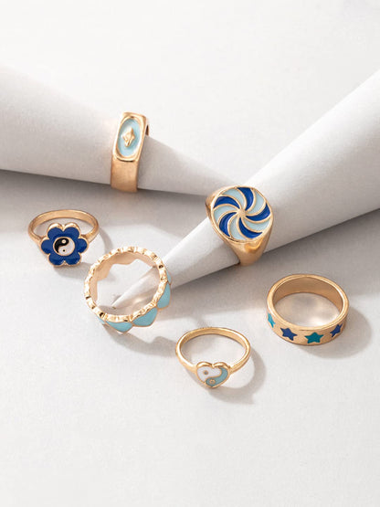 Combo of 6: Gold Plated Knuckle Rings for Women | Elegant Stackable Design | Size: US7 | Blue