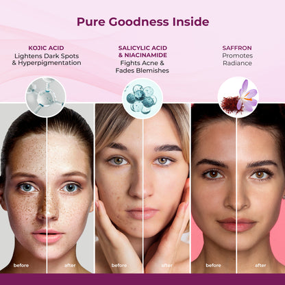 • Dual Action Skincare: The combo includes both the Saffron Lightening Body Lotion and the Acne Body Wash Gel, targeting multiple skin concerns effectively.