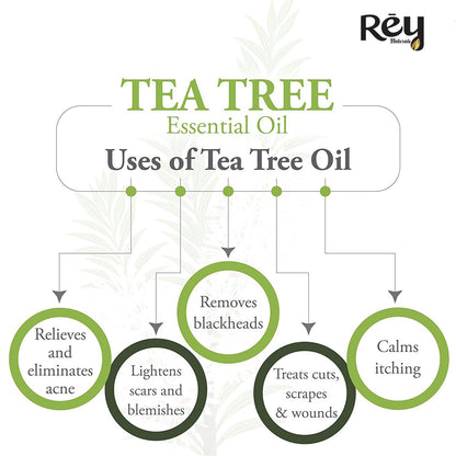 Rey Naturals® tea tree oil & Rosemary essential oils - Pure 100% Natural for Healthy Skin, Face, and Hair (15 ml + 15 ml)