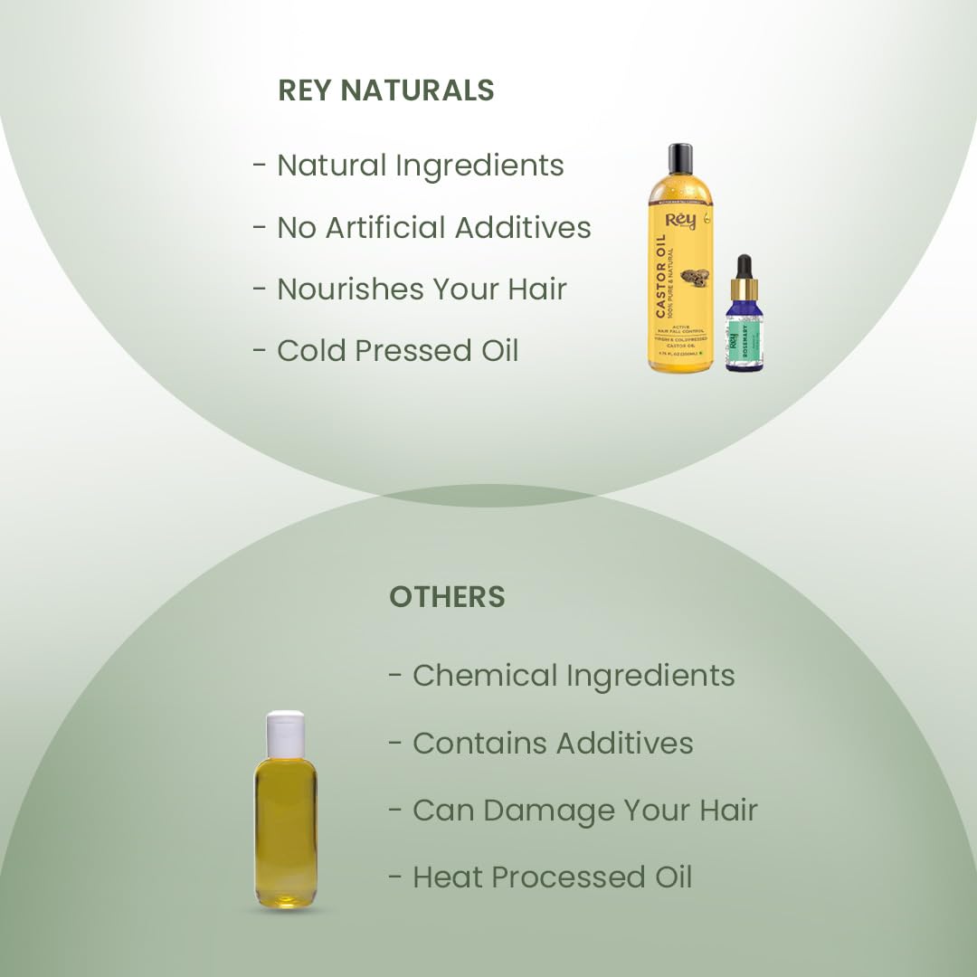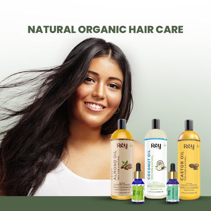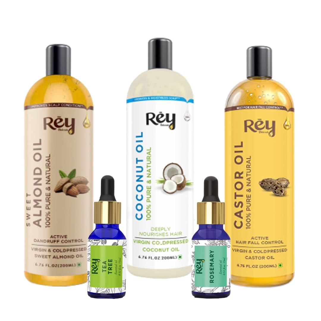 Rey Naturals Complete Hair Care Kit- Castor Oil+Coconut Oil+Almond Oil+Rosemary Oil+Teatree Oil