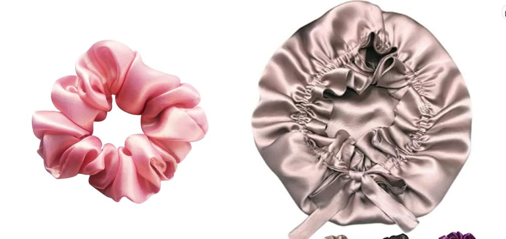 Satin Hair Bonnet with Ribbon Tie Band (Rose) & Prolixr's Pink Scrunchies Pack of 3 | Hair Care Set for Soft, Hydrated Locks & Stylish Hairstyles | By Bollywood Hair Stylist Savio John Pereira