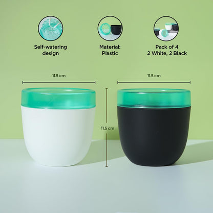 Combo: Self Watering Plant Pots - Vibrant Colors | 4.5 inches | Pack of 4 | Lightweight