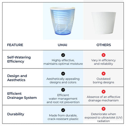 • Water Efficiency: The innovative self-watering system prevents water wastage.