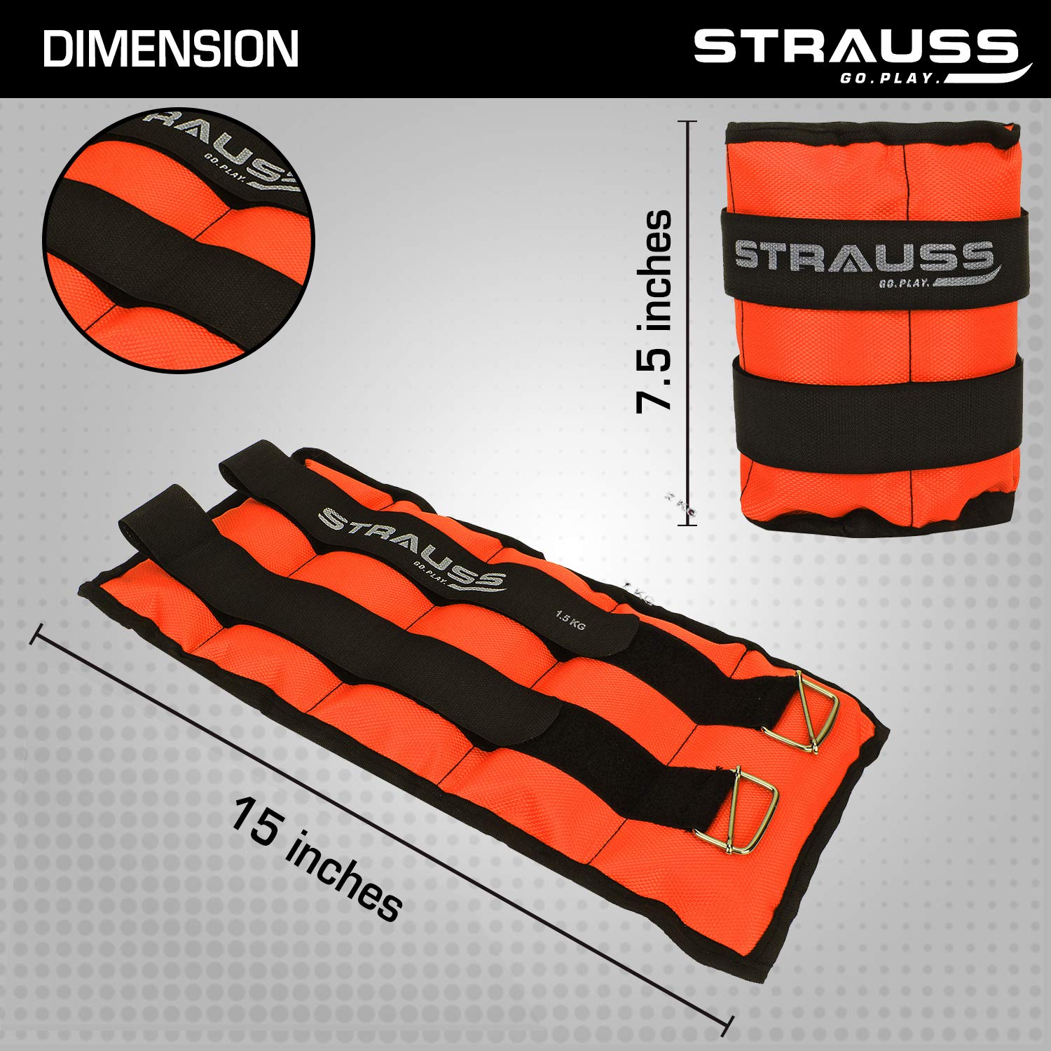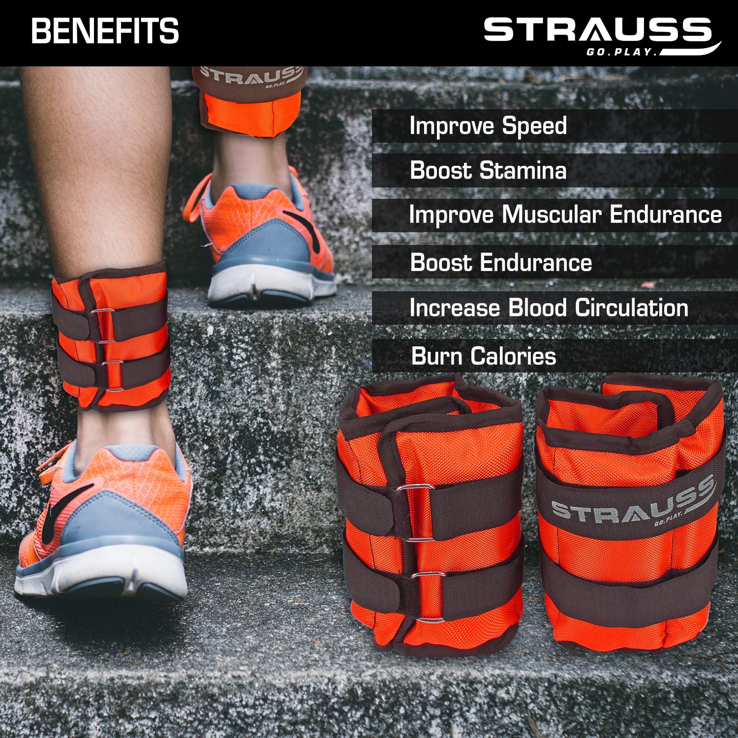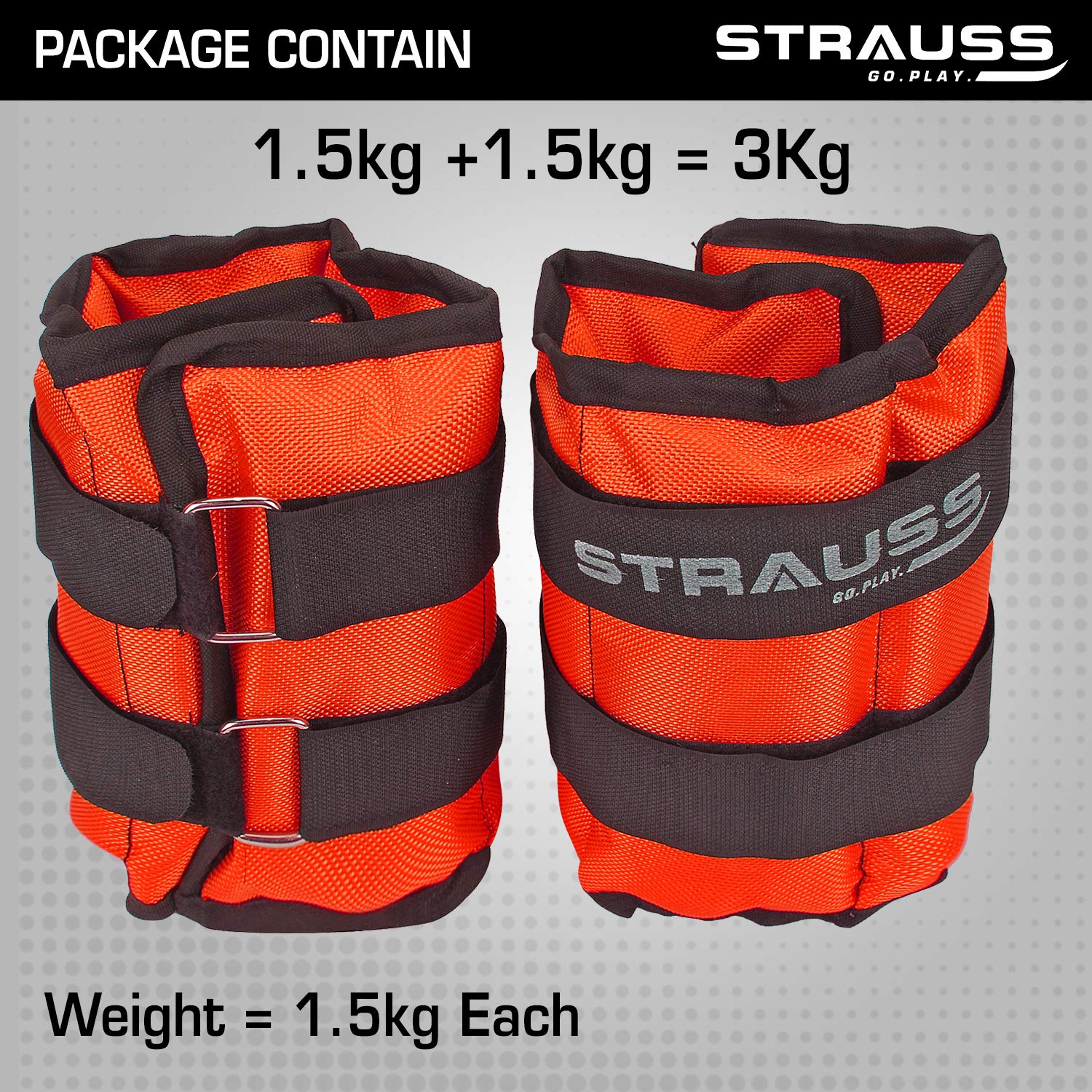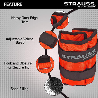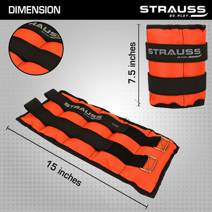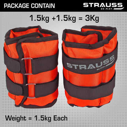 Strauss Adjustable Ankle/Wrist Weights 1.5 KG X 2 | Ideal for Walking, Running, Jogging, Cycling, Gym, Workout & Strength Training | Easy to Use on Ankle, Wrist, Leg, (Orange)