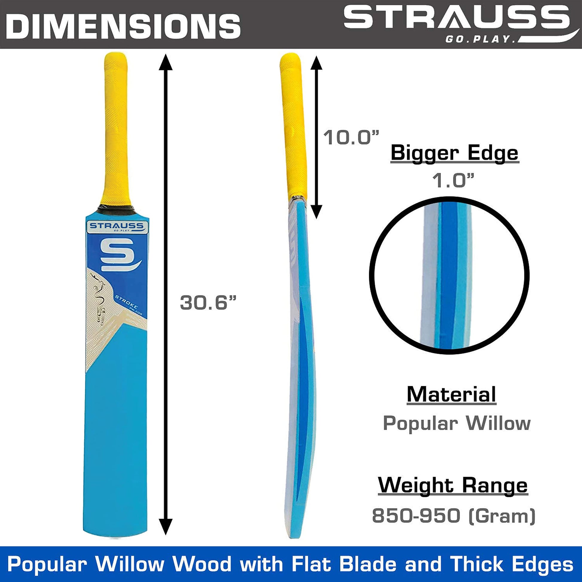 Introducing the Strauss Cricket Bat | Edition: PW-200 | Popular Willow by Strauss Sports, your perfect companion for tennis ball cricket. This combo includes a high-quality bat and a ball, designed for players of all levels. Made from superior popular willow, this bat combines outstanding power with a large sweet spot and lasting durability, ensuring you make the most of every swing. With its size 5 designation and vibrant blue color, it’s not just a bat; it’s a statement.