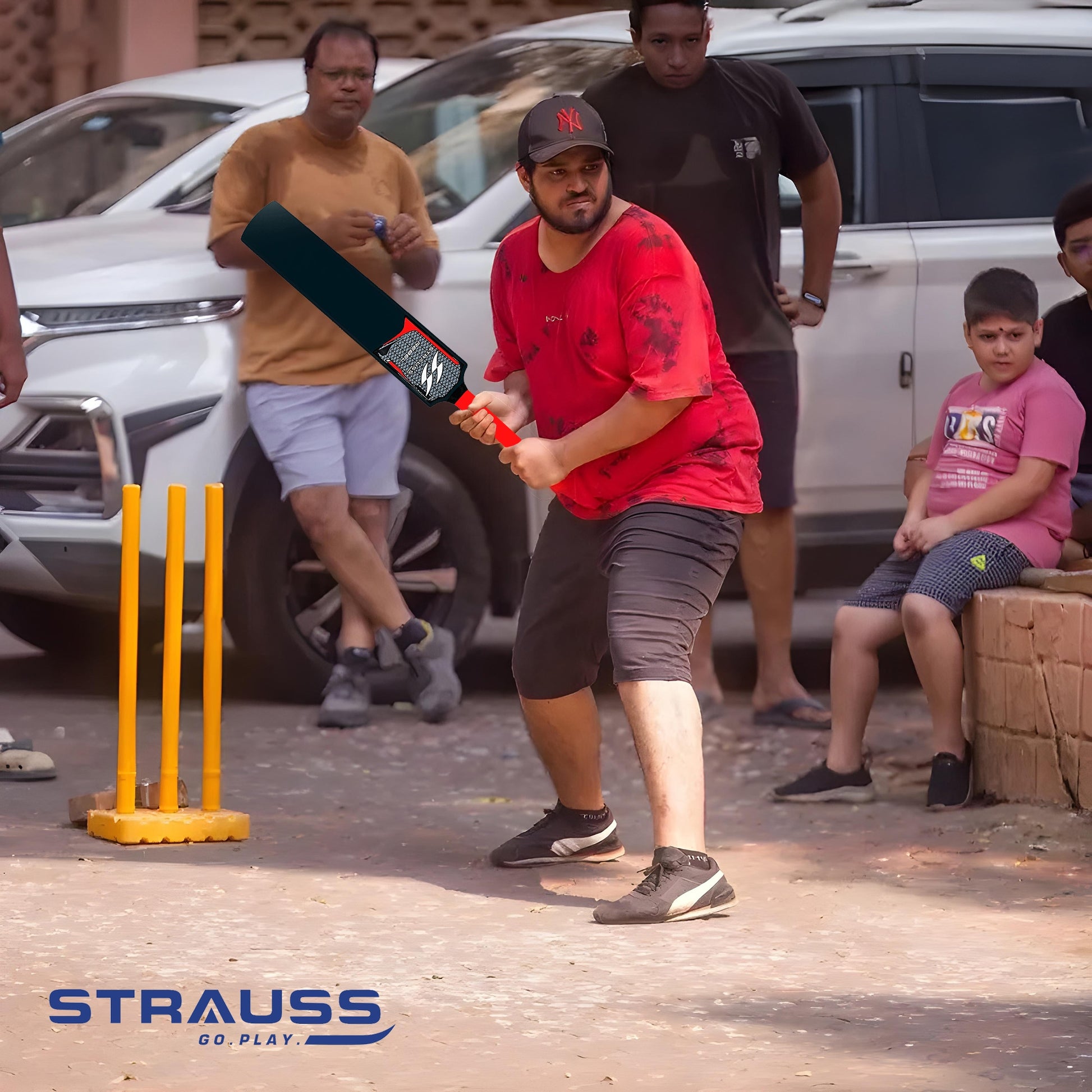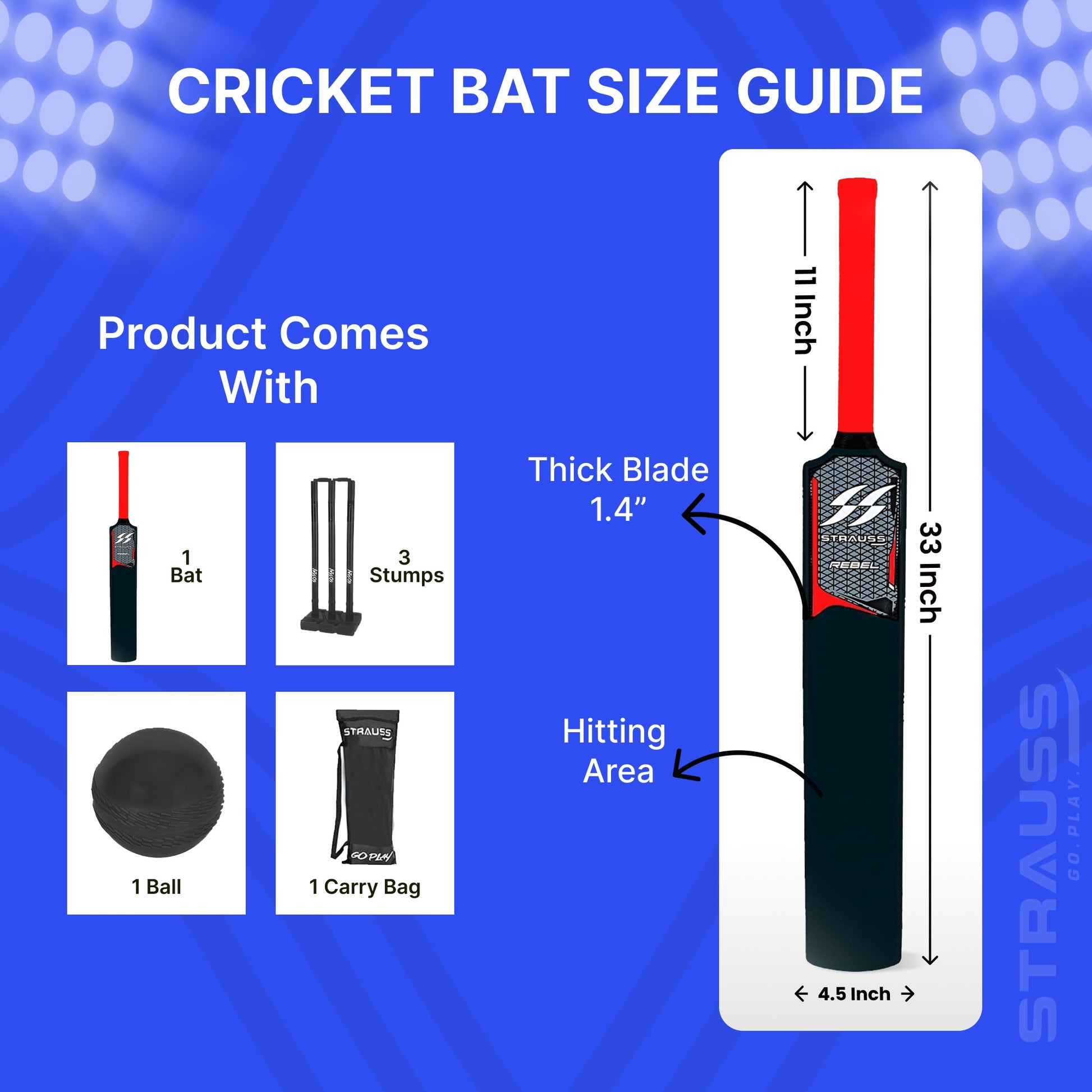 • LIGHTWEIGHT PVC MATERIAL: The Strauss Cricket Set is crafted with high-quality PVC, which ensures durability, shock absorption, and weather resistance.
