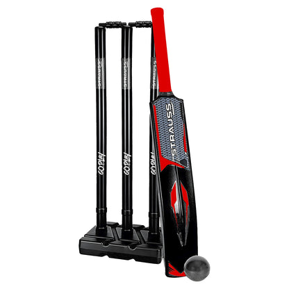 Strauss Cricket Combo Kit Set | Plastic/PVC Cricket Kit Set | Full Size | 1 Bat + 1 Ball + 3 Stumps + 2 Bails + 1 Base | Color: Black | for All Age Groups | Tennis & Synthetic Ball Cricket Kit