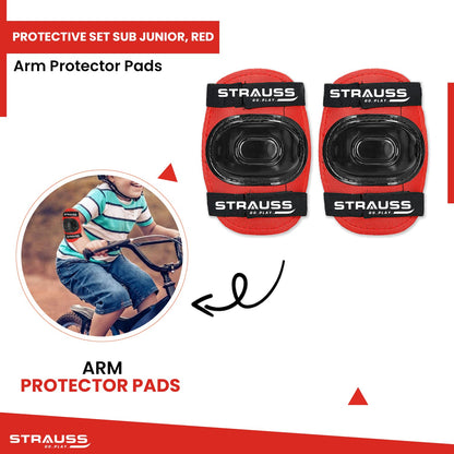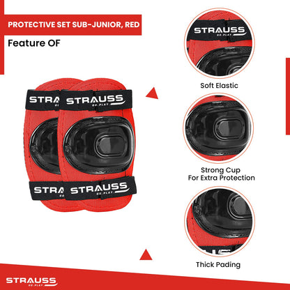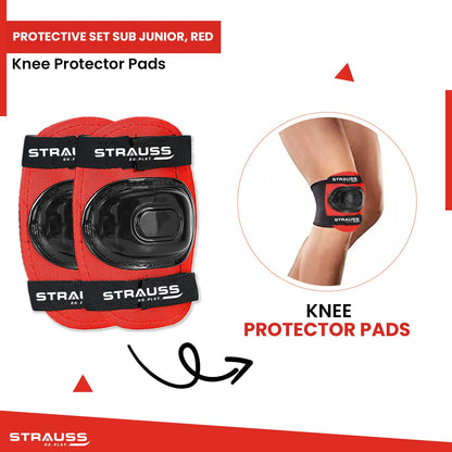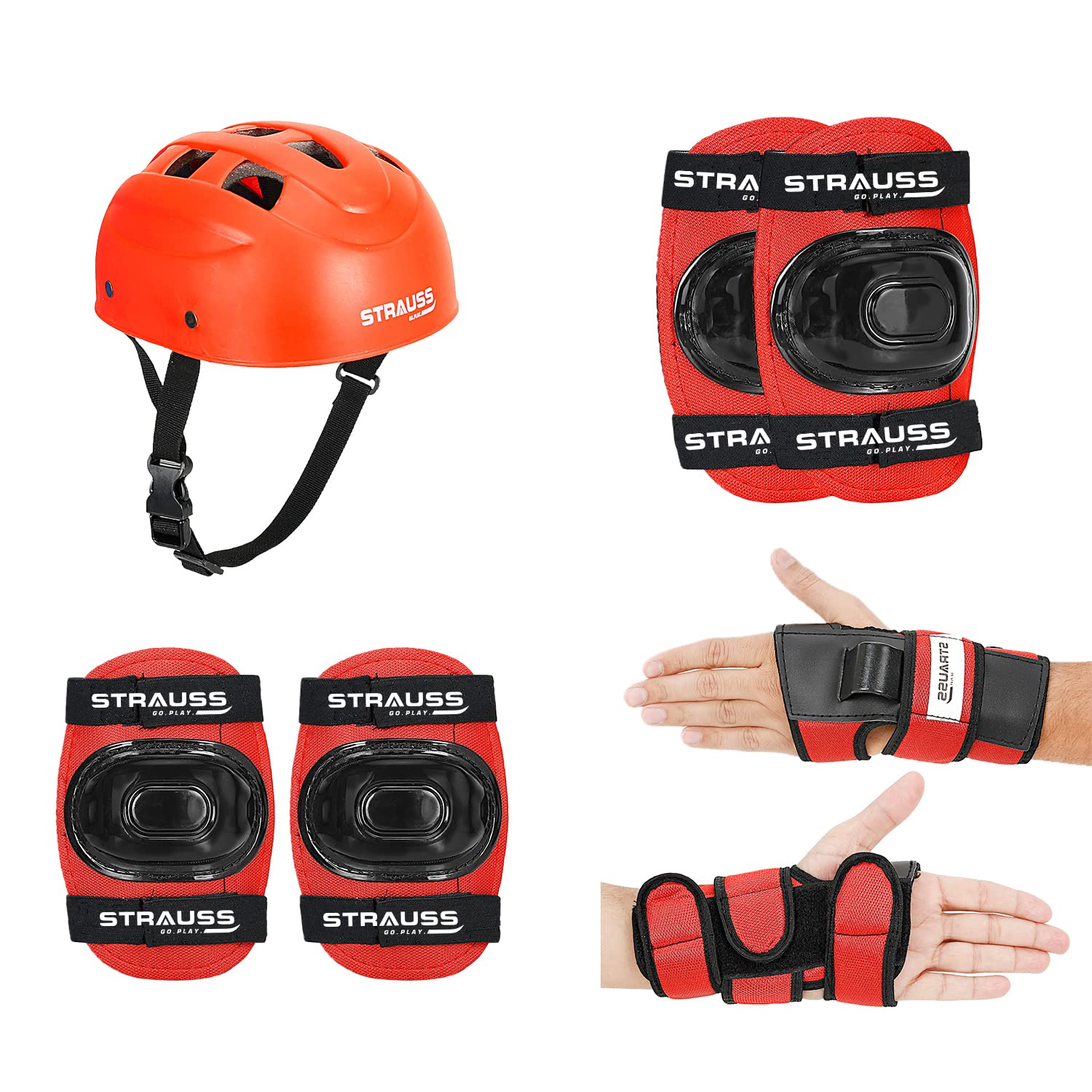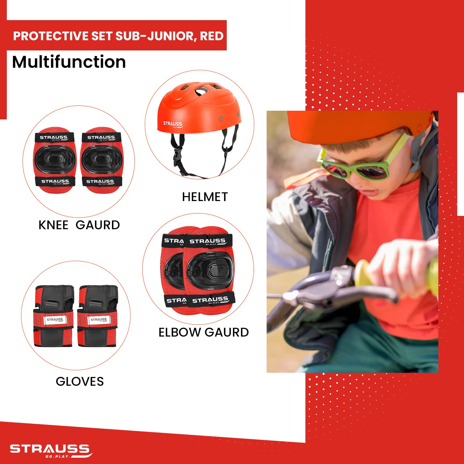 Strauss Professional All-in-One 4 Piece Protective Set for Roller Skating | Skateboarding, Inline Skating, Cycling & Running for Boys & Girls | Size Sub-Junior, (Red)