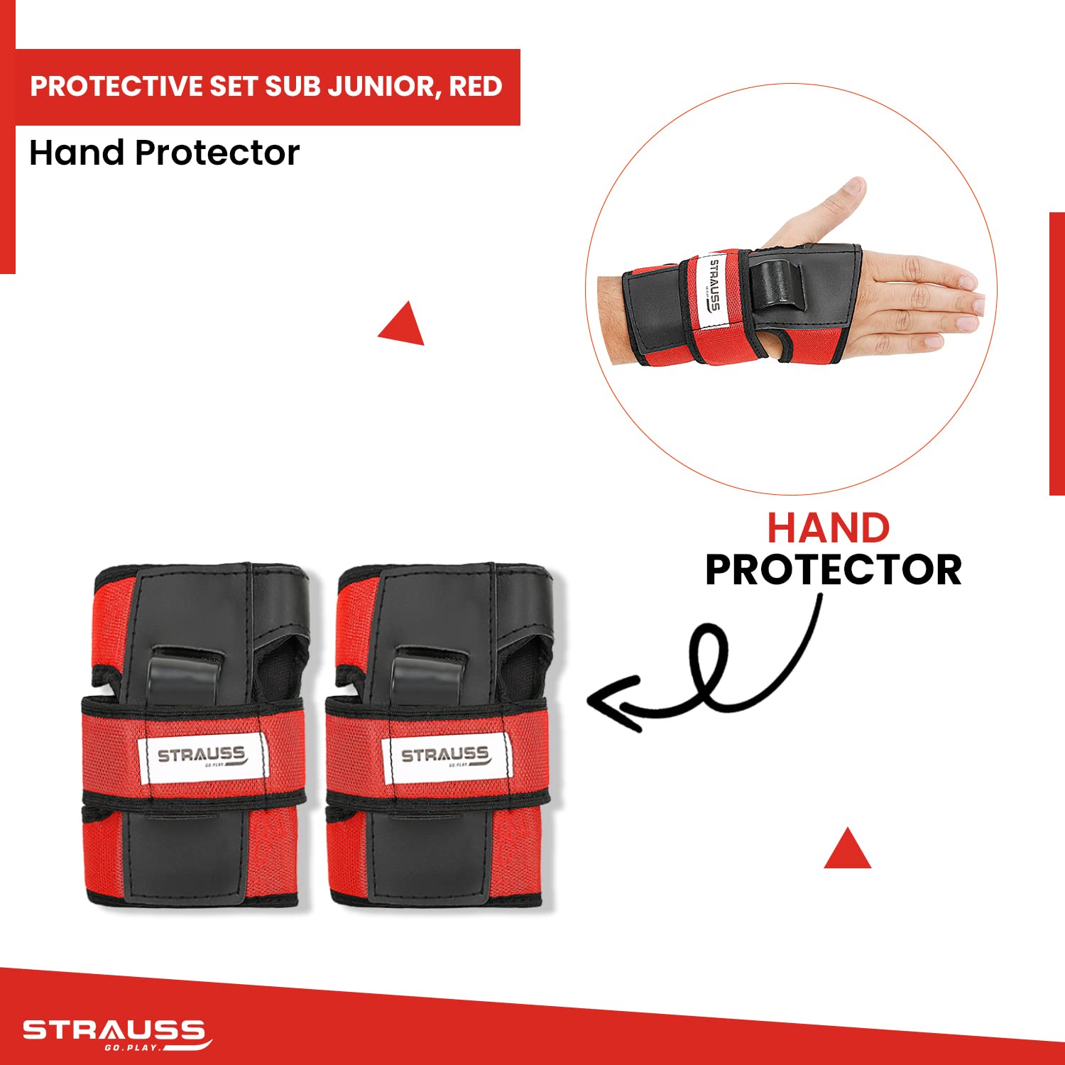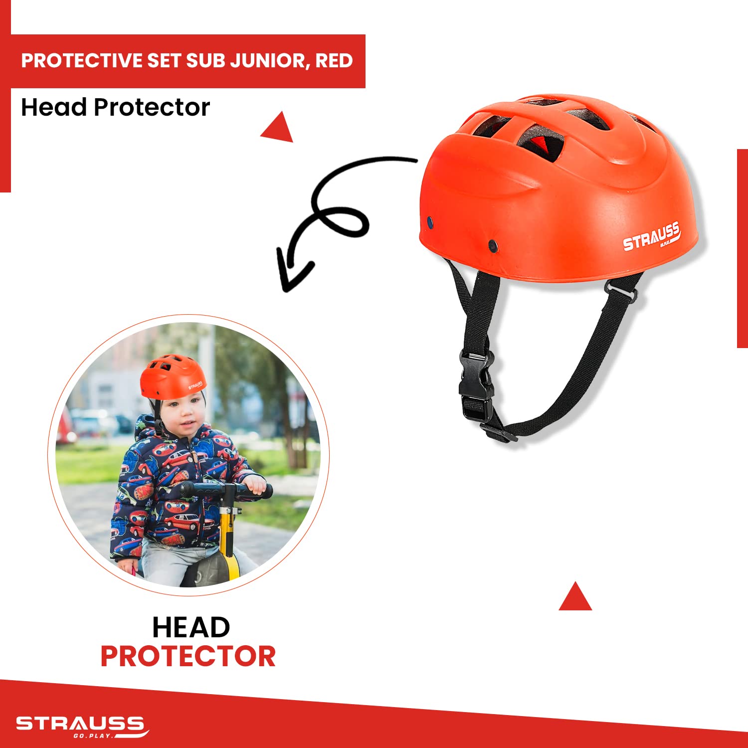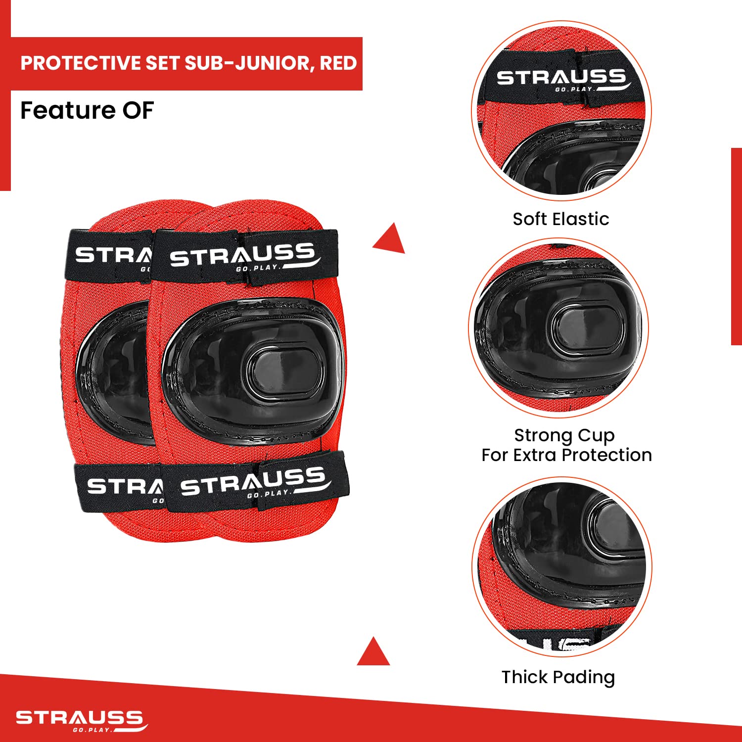 Strauss Professional All-in-One 4 Piece Protective Set for Roller Skating | Skateboarding, Inline Skating, Cycling & Running for Boys & Girls | Size Sub-Junior, (Red)