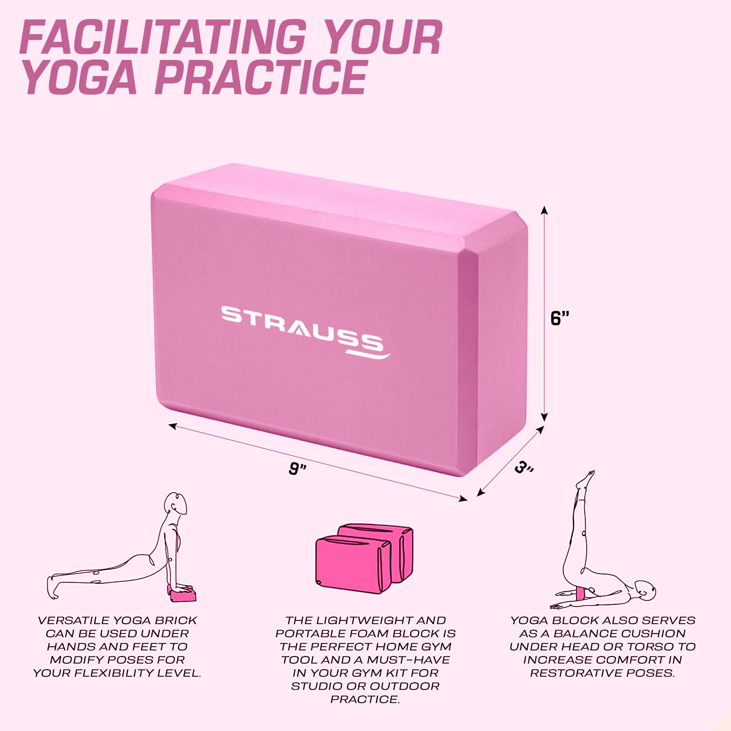Ideal for yoga practitioners of all levels, whether you're just starting your yoga journey or you're an advanced yogi looking to enhance your practice. This combo kit is a great addition for individuals seeking flexibility, balance, and strength training. With STRAUSS Sports, your yoga experience will be elevated to new heights!