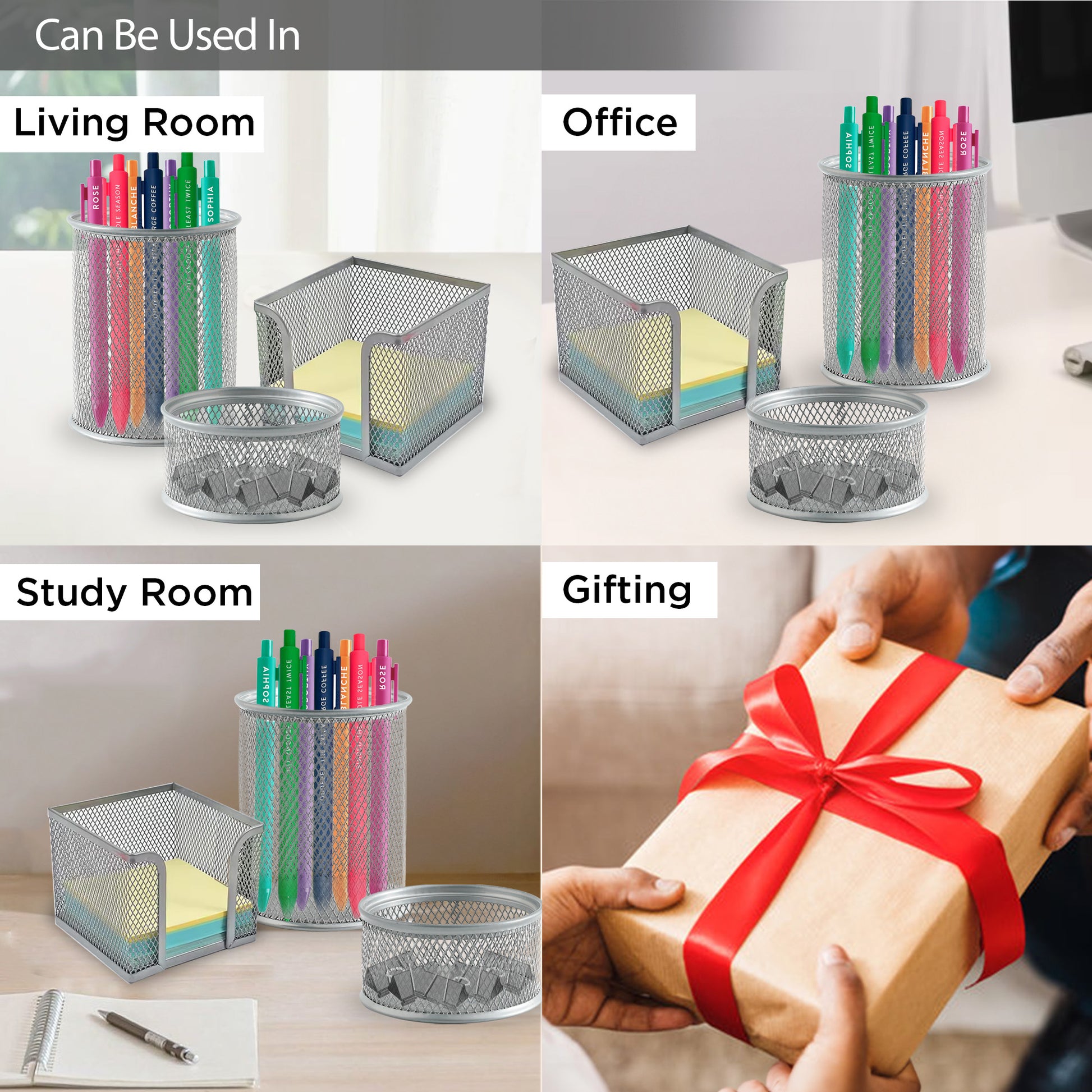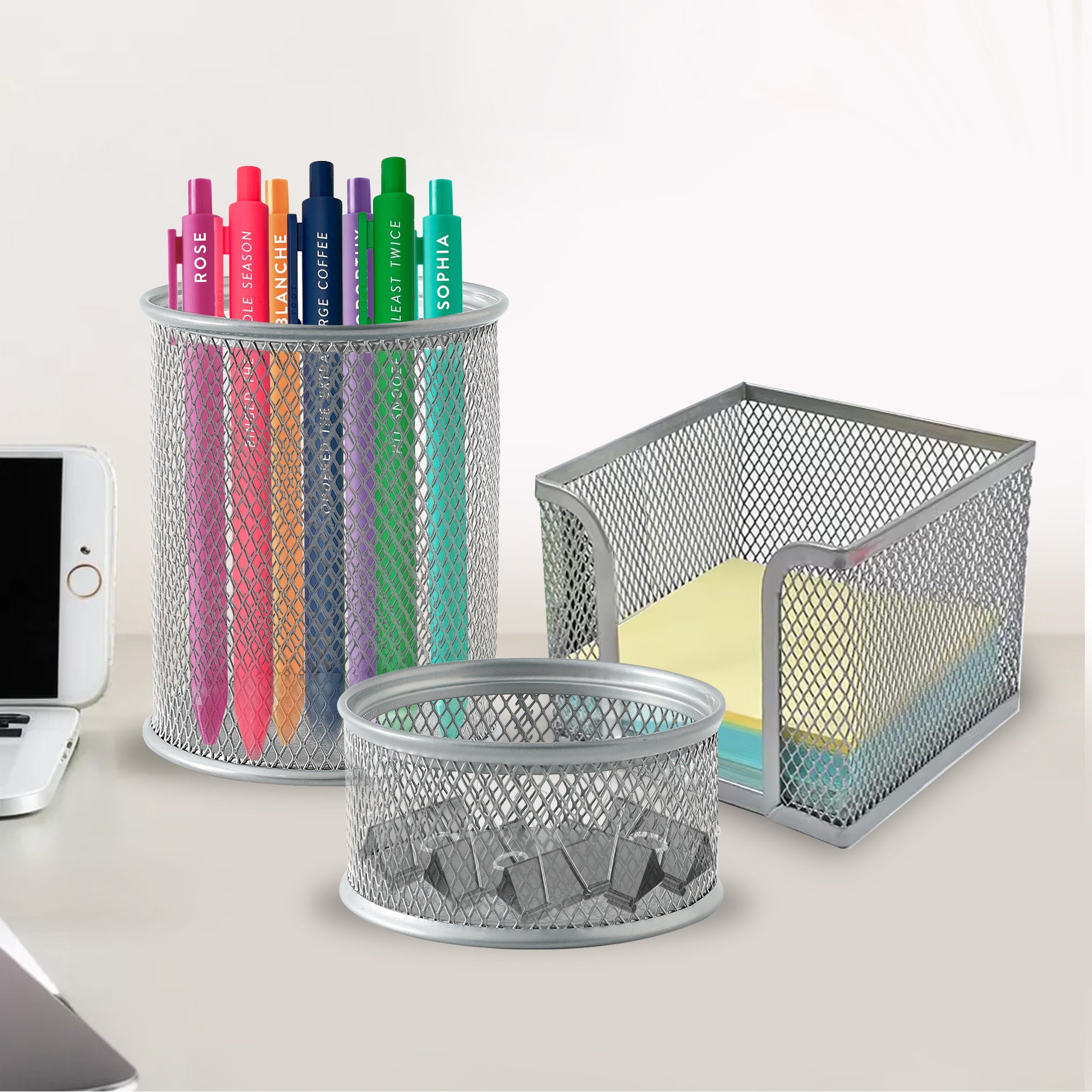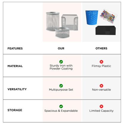 Pen Holder For Study Table, Paper Clips Holder & Paper Holder For Desk (Set Of 3) Pen Holder For Office, Reception Table | Office Table Accessories | Metal Mesh Design