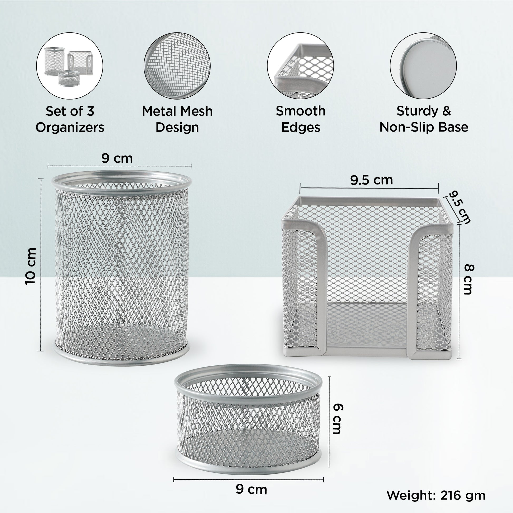UMAI Pen Holder For Study Table, Paper Clips Holder & Paper Holder For Desk (Set Of 3) Pen Holder For Office, Reception Table | Office Table Accessories | Metal Mesh Design