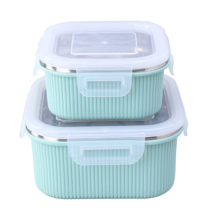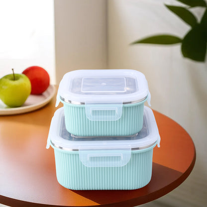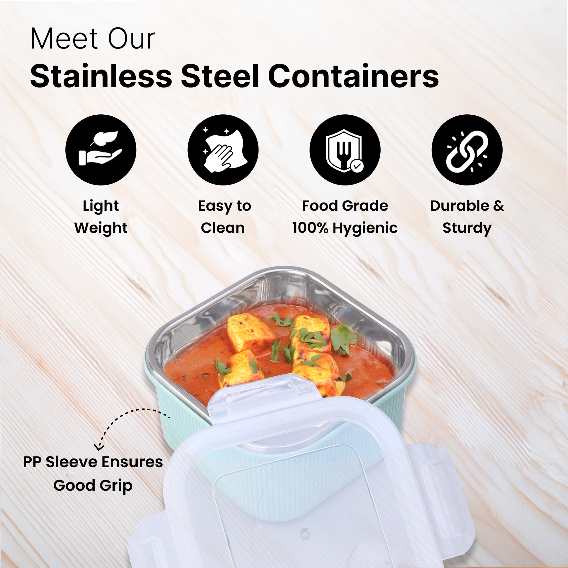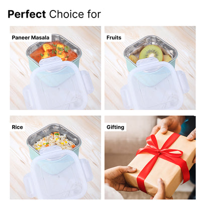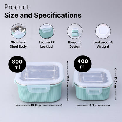 Combo: Steel Lunch Box Set - Airtight, Leak Proof | Pack of 2 | 400ml & 800ml | Green