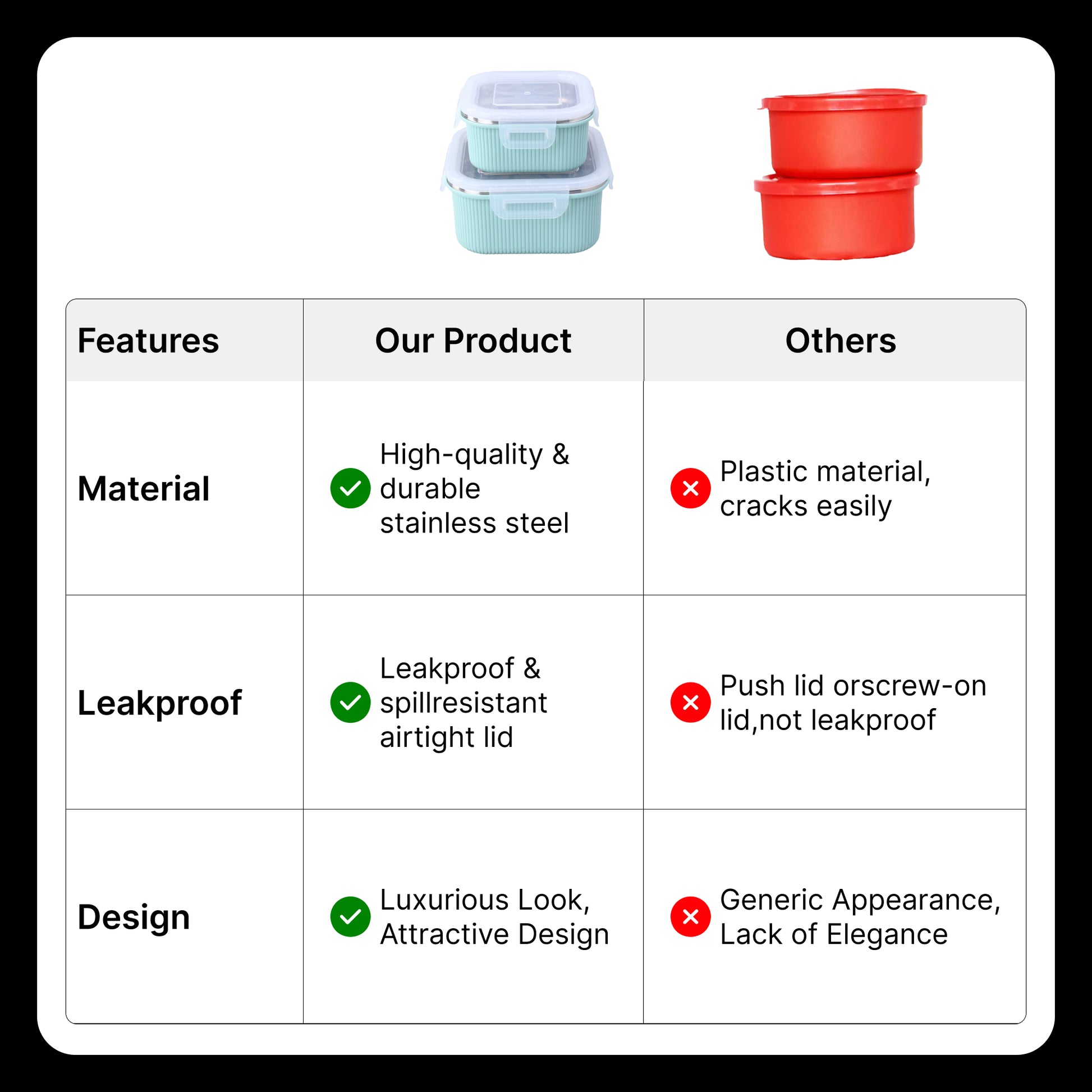 - LEAK-PROOF DESIGN: Featuring an innovative 4-side airtight lock mechanism to prevent spills—worry-free packing every time!