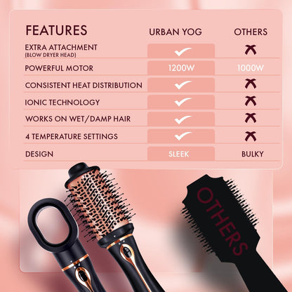 Introducing the Urban Yog 3-in-1 Hot Air Brush and MakeMeeBold Dry Shampoo, your perfect solution for refreshing and styling your hair effortlessly. This combo includes a 1.5-inch barrel hot air brush powered by 1200W, designed for multiple styling functionalities: drying, straightening, and volumizing. Also included is the 200 ml MakeMeeBold Dry Shampoo, an essential for maintaining fresh, voluminous hair between washes.
