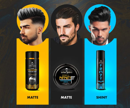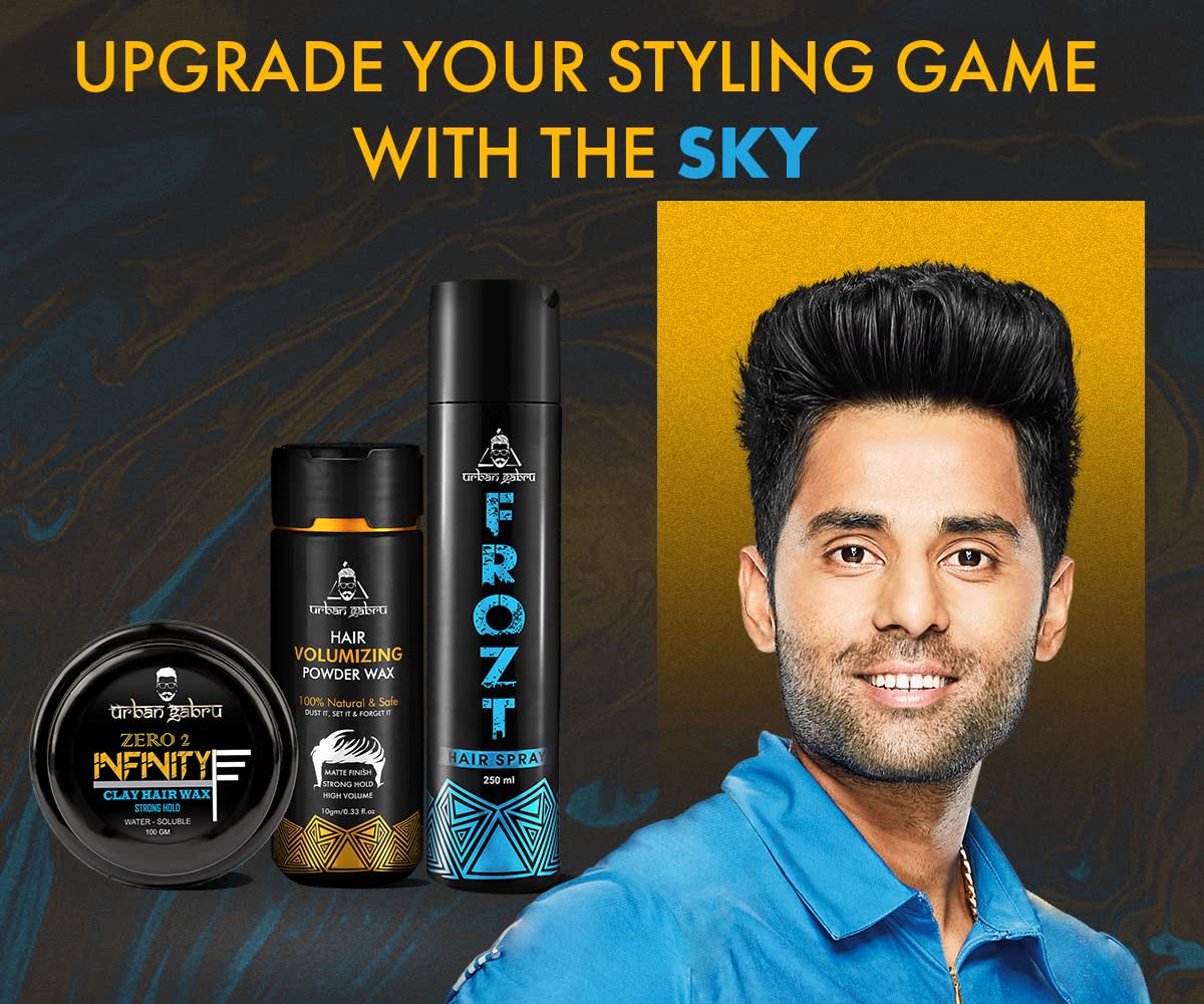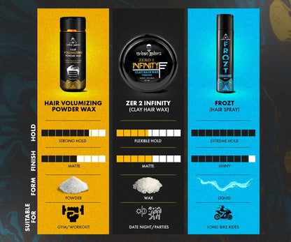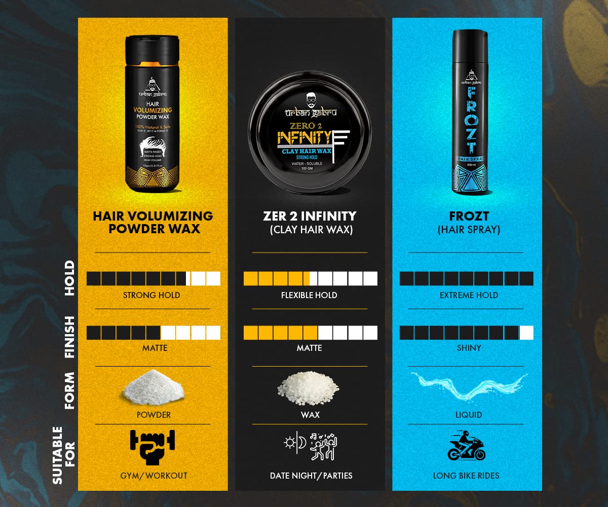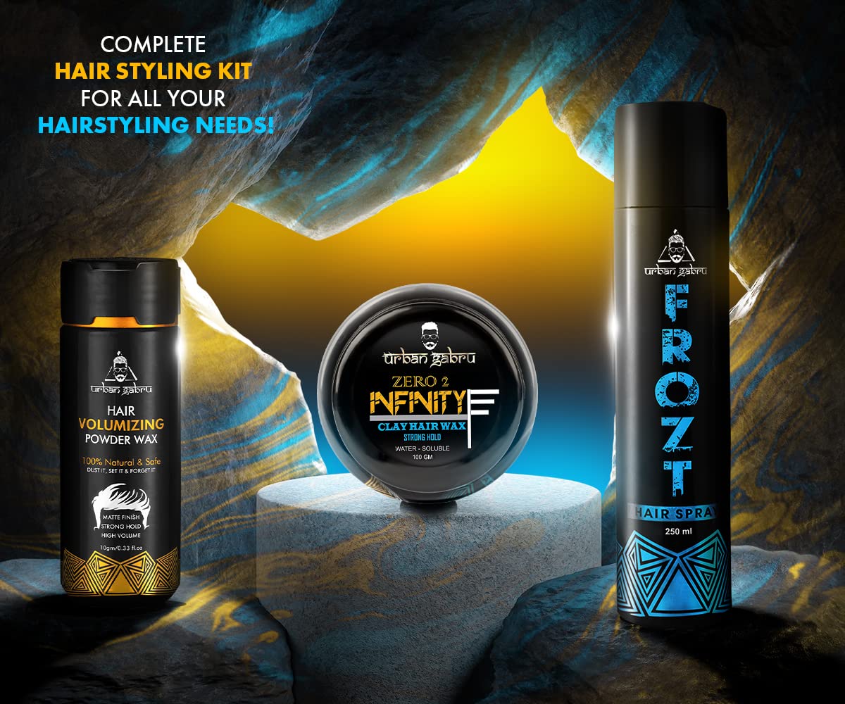 Urbangabru Hair Styling Combo Kit - Hair Volumizing Powder Wax (10 GM) + Infinity Hair Wax (100 GM) + Frozt Hair Spray (250 ML)