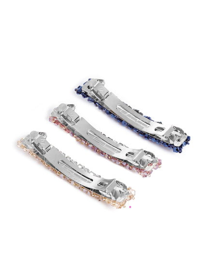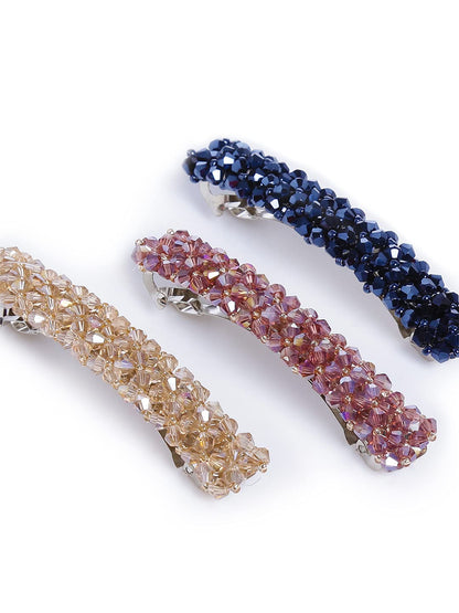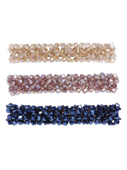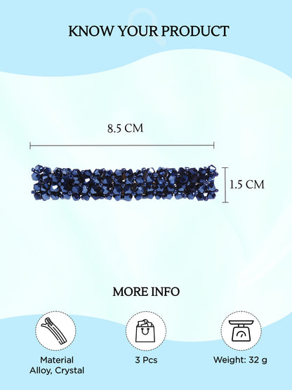 Introducing the Combo of 3 Elegant Hair Clips by Yellow Chimes, the perfect hair accessories for women and girls. These stylish barrettes are crafted from high-quality crystal beads and alloy, ensuring durability and elegance. Each clip measures approximately 8.5 cm in length and 1.5 cm in width, making them ideal for various hairstyles and occasions. With a delightful multicolor design, these hair clips will suit any outfit and style.