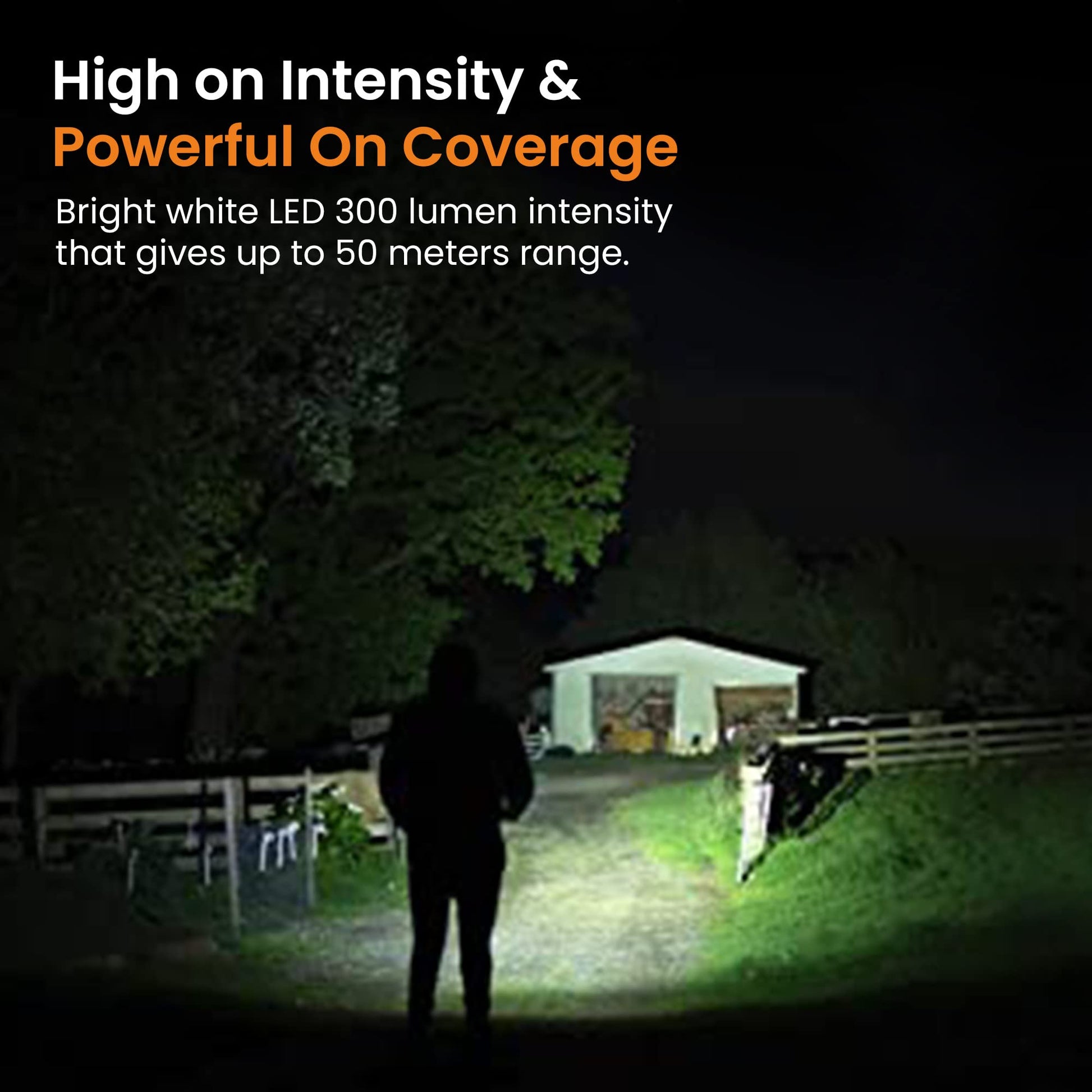 • SUPER BRIGHT & LONG-LASTING: A state-of-the-art LED bulb ensures a beam distance up to 50m.