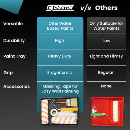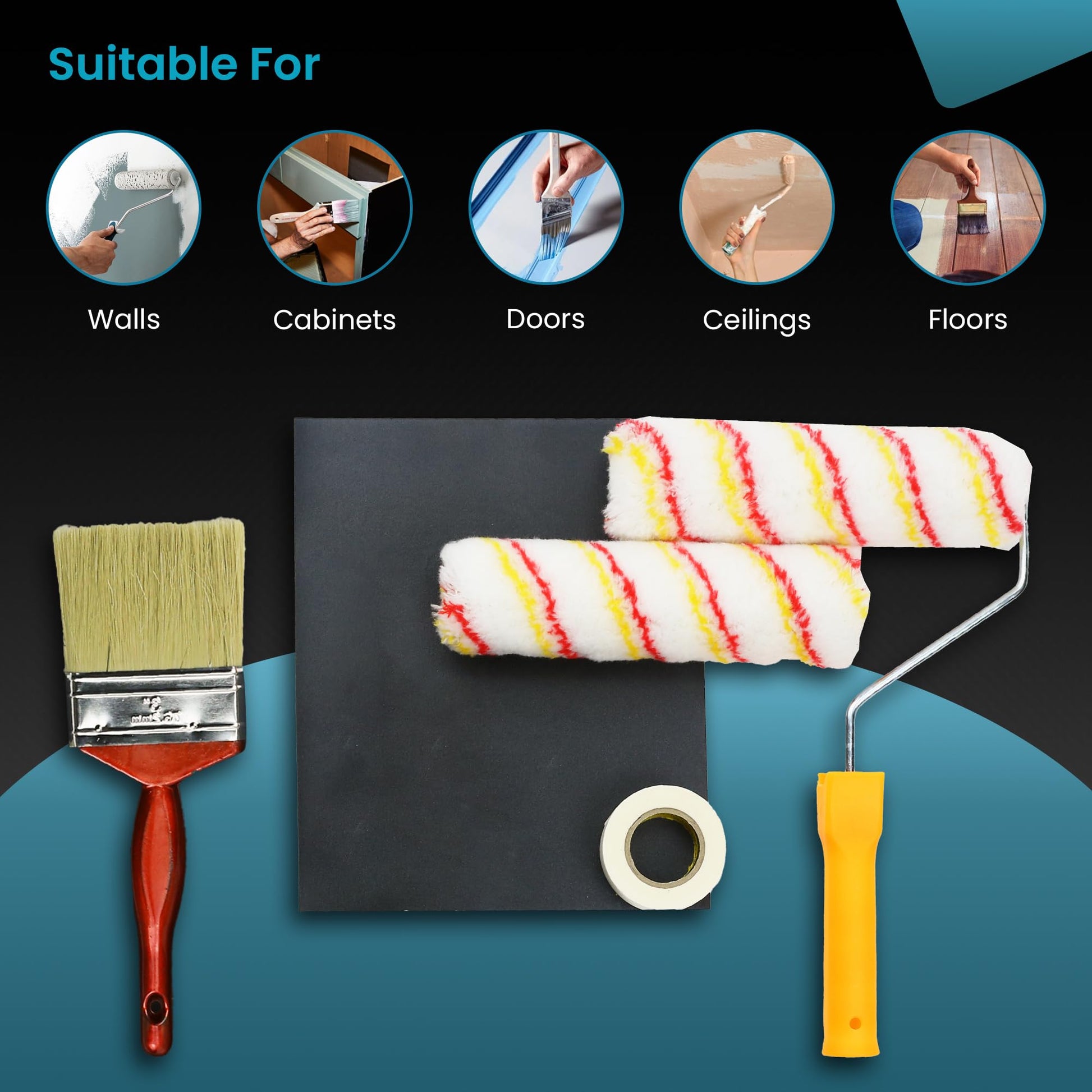 CHESTON DIY Paint Kit - Complete Self-Painting Set with Essential Tools - Painting Tray | Paint Roller | Paint Brush | WaterProof SandPaper | Masking Tape | Hand Gloves for painting at home