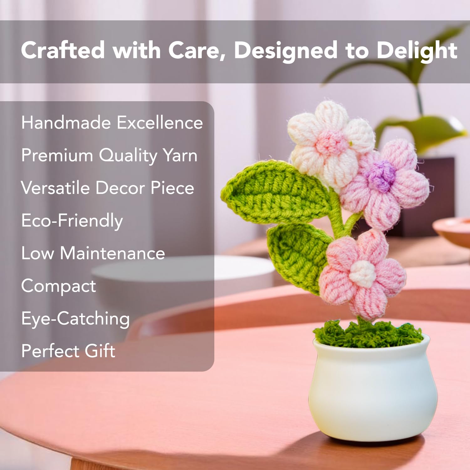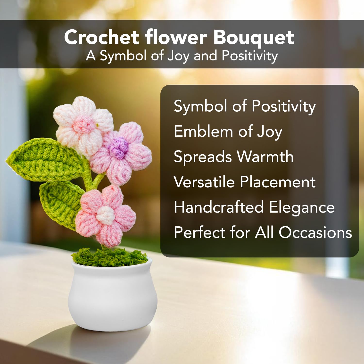 • HANDMADE EXCELLENCE: Each crochet flower is uniquely crafted, ensuring a personal touch to your decor.