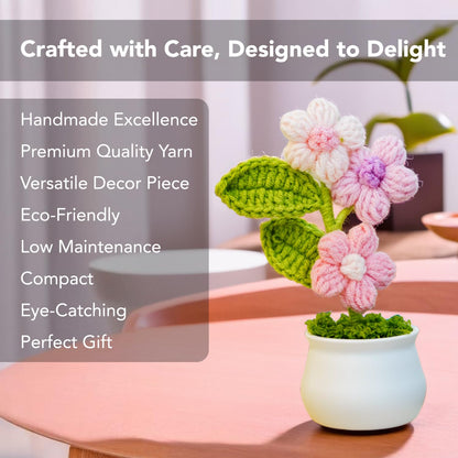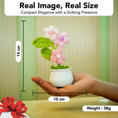 Ideal for flower enthusiasts, eco-conscious decor lovers, and anyone looking to brighten their space with a touch of handmade elegance. Experience the joy and warmth that the Ekhasa Cute Cherry Blossom Crochet Flowers Pot brings to your surroundings.