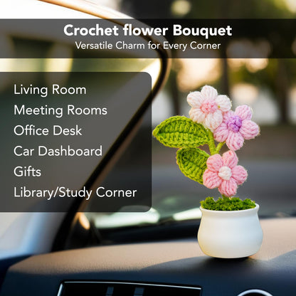 Ekhasa Cute Cherry Blossom Crochet Flowers Pot for Car Dashboard | Knitted Flowers Vase Pot with Flowers for Table, Office, Home Decor Other Decoration | Daisy Crochet Flower Bouquet | Crochet Gifts
