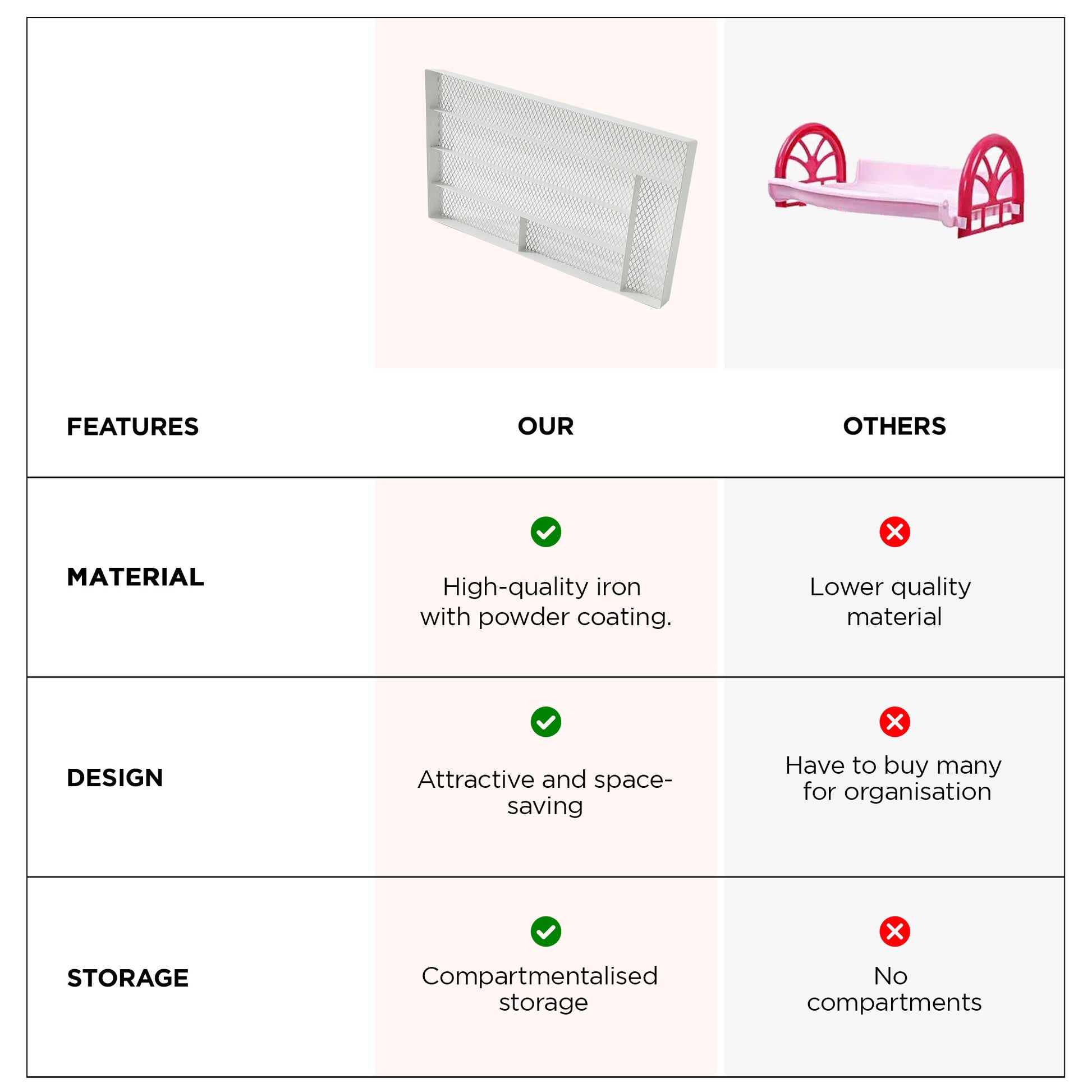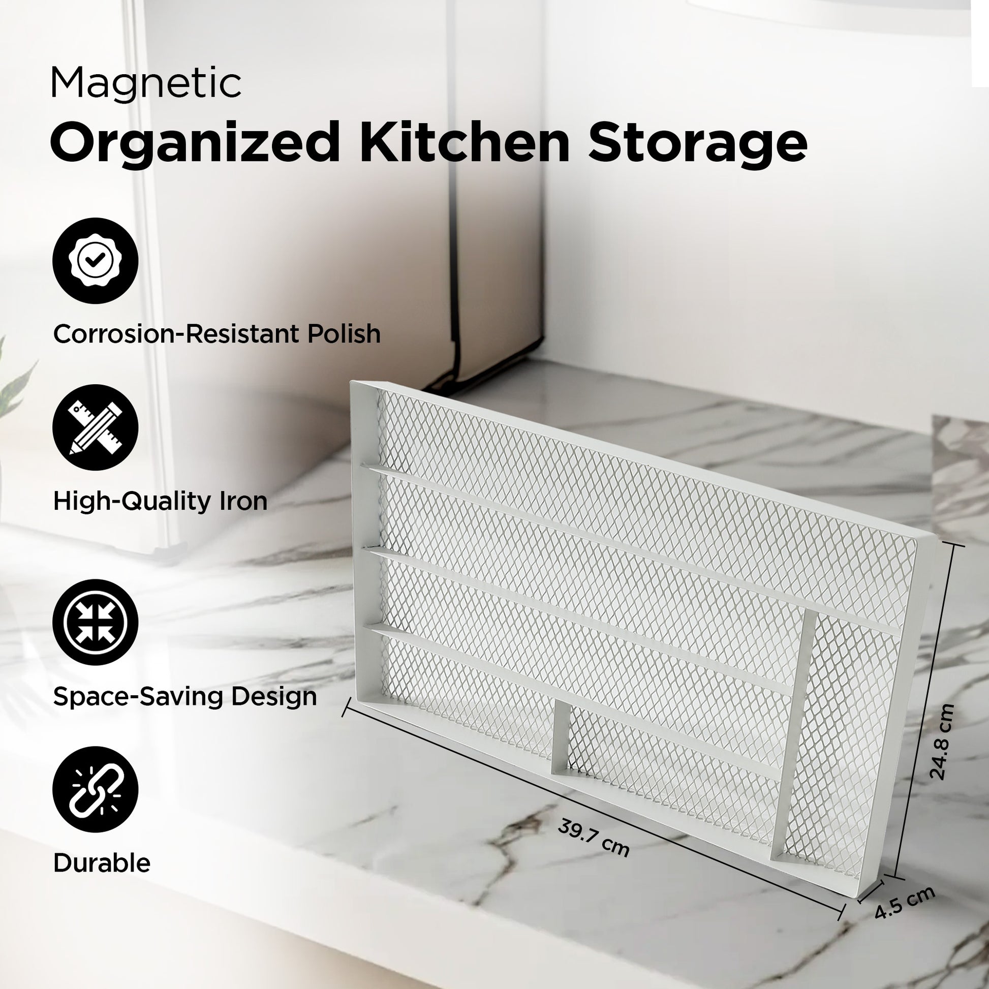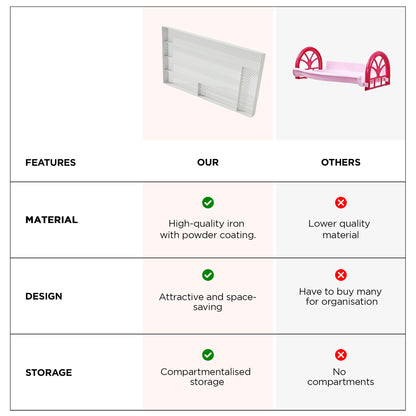 Introducing the UMAI Cutlery Racks, a must-have kitchen accessory that transforms your cluttered kitchen space into an organized haven. This durable white cutlery basket offers 5 compartments to neatly hold your utensils, making it the perfect spoon and knife stand for your kitchen. Crafted from sturdy iron with a sleek spray powder coating, this 39.7cm long x 24.8cm wide x 4.5cm high cutlery holder prioritizes both quality and functionality. The UMAI cutlery basket is ideal for decluttering your kitchen, dining table, or any shelf and provides a practical storage solution that keeps your cutlery organized and easily accessible.
