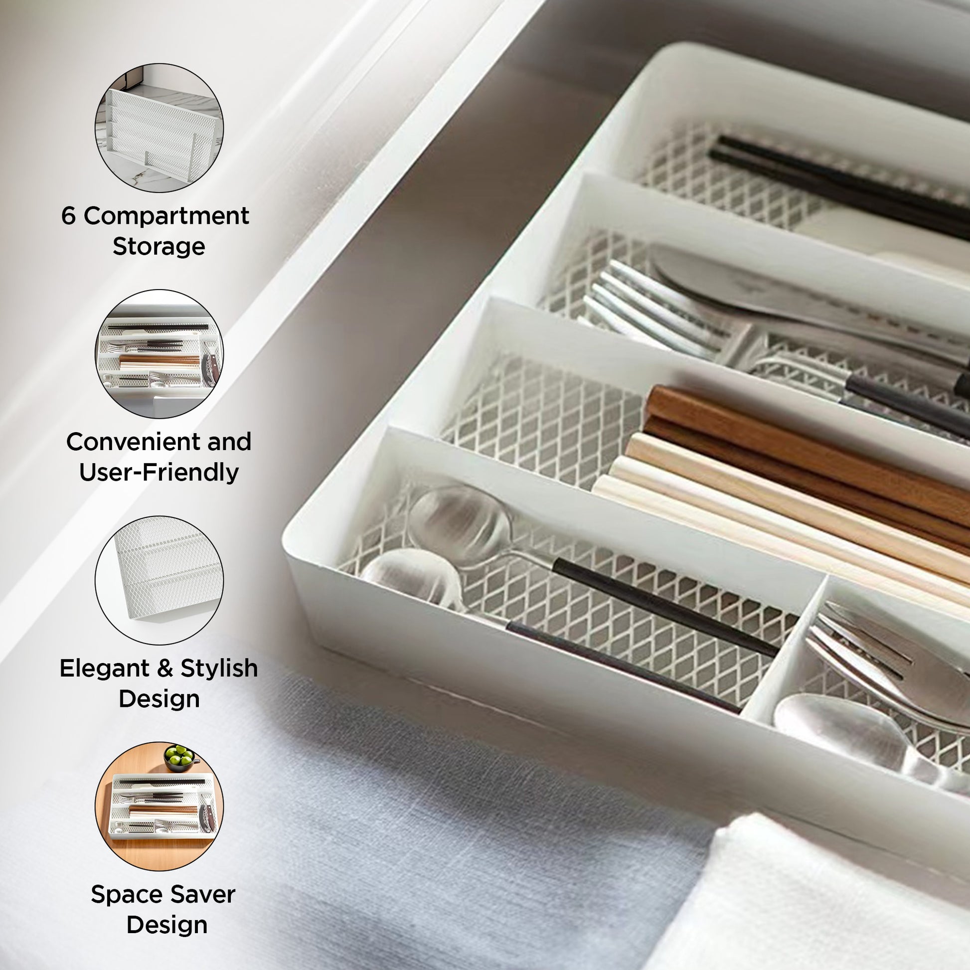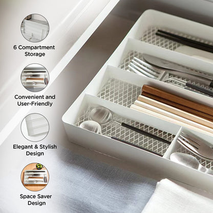Cutlery Racks - 5-Compartment Iron Organizer | White | 39.7cm x 24.8cm