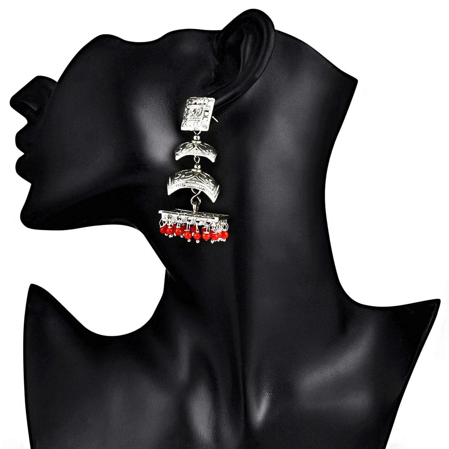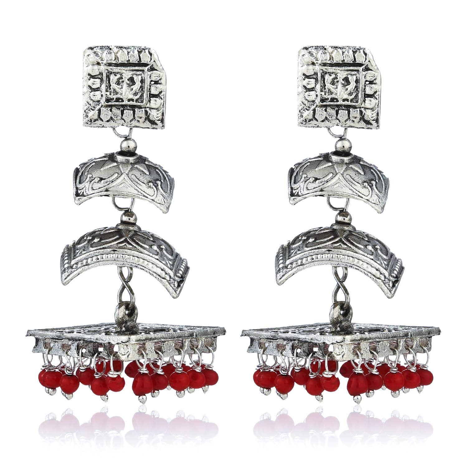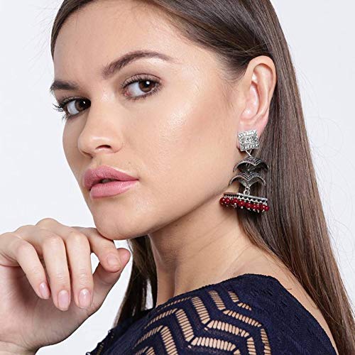 Yellow Chimes Oxidized Silver Traditional Danglers Earrings For Women & Girls