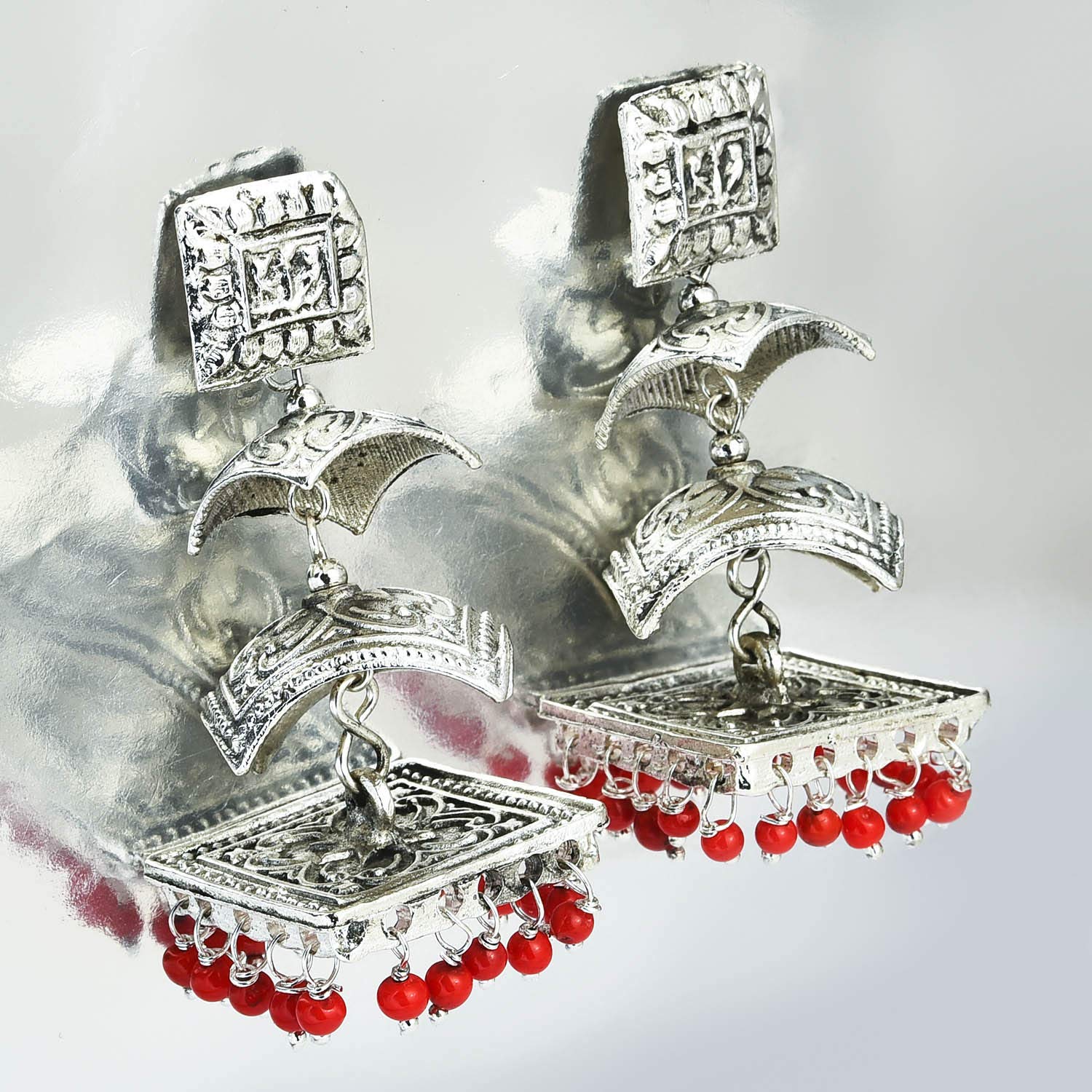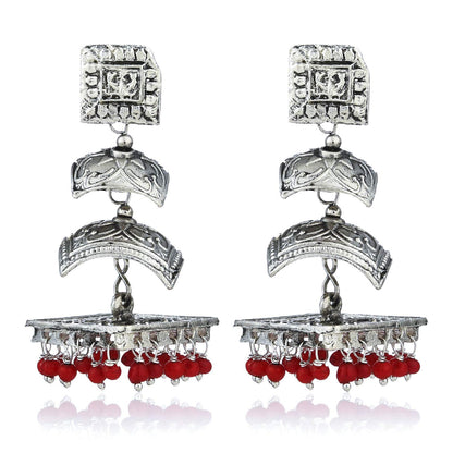 Oxidized Silver Traditional Danglers Earrings For Women & Girls