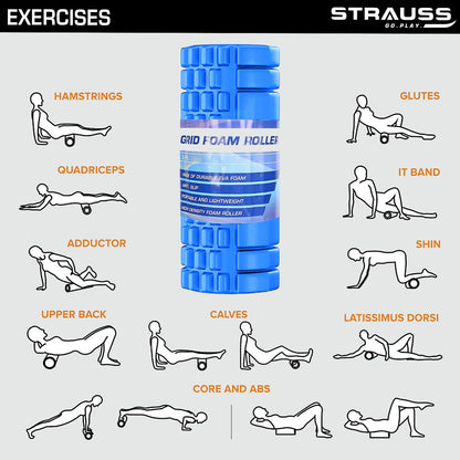 Strauss Deep Tissue Massage Foam Roller|High-Density Muscle Roller for Myofascial Release, Physical Therapy, Yoga, Pilates|Exercise Equipment for Deep Tissue Massage and Muscle Relief|45cm,(Blue)