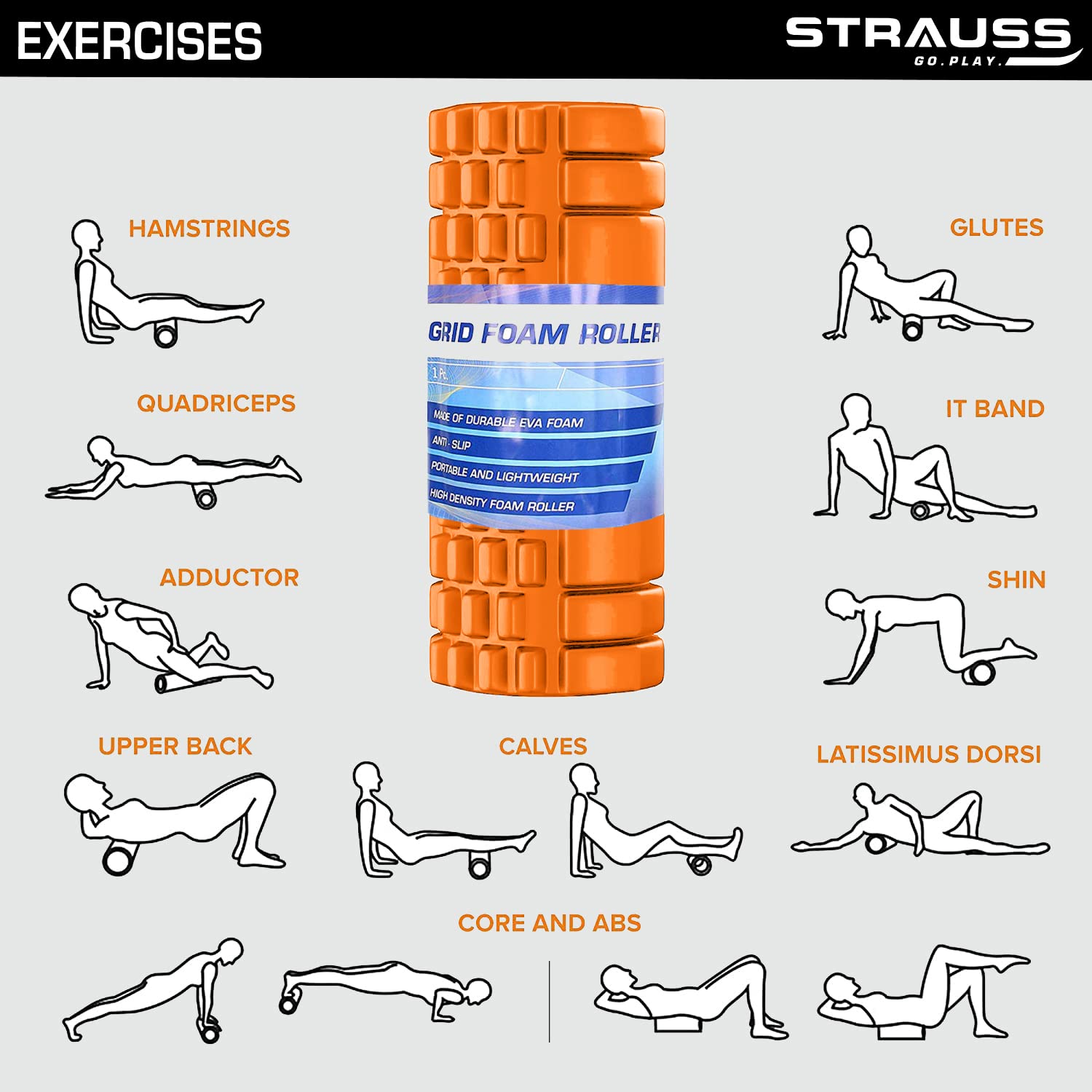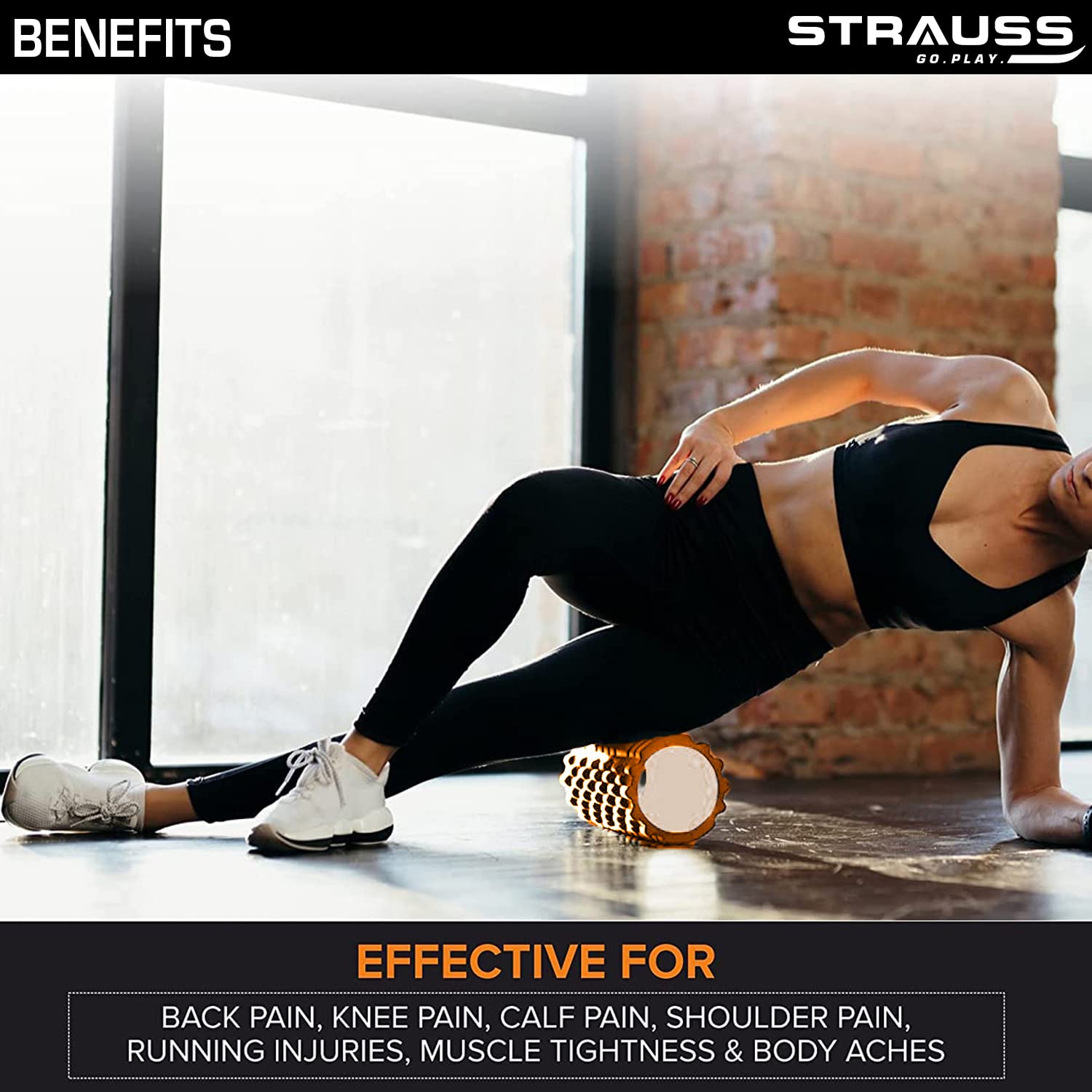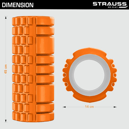 Strauss Deep Tissue Massage Foam Roller|High-Density Muscle Roller for Myofascial Release, Physical Therapy, Yoga, Pilates|Exercise Equipment for Deep Tissue Massage and Muscle Relief|45cm,(Orange)
