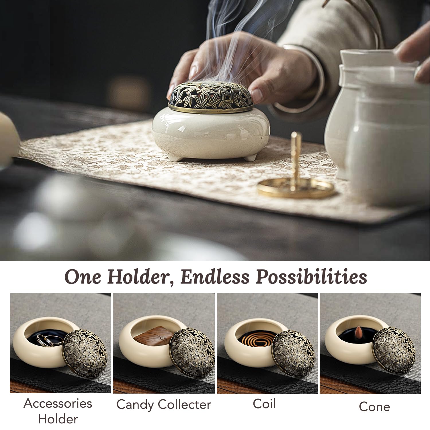 • PREMIUM CERAMIC DESIGN: Crafted from high-quality ceramic, this holder combines durability with elegance, elevating your table and pooja room aesthetics.