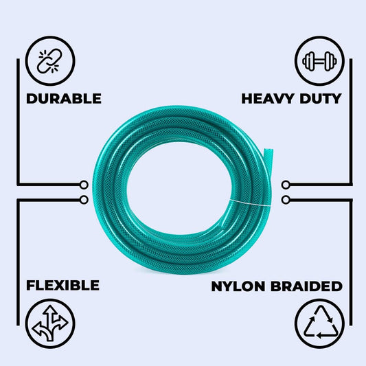 Basic PVC with Nylon Braided Water Pipe 10 Meter | Water Pipe for Garden, Car & Pet Cleaning | Easy to Use, & Leak Proof Hose Pipe | Green