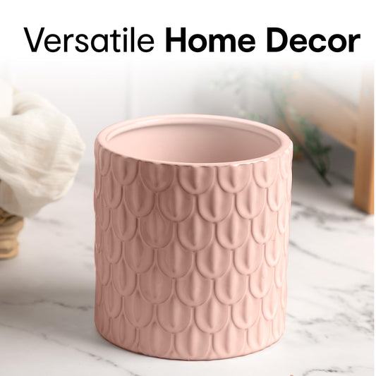 Pink Scalloped Pot: Medium Stoneware Ceramic | 16.2cm H x 16.8cm Dia