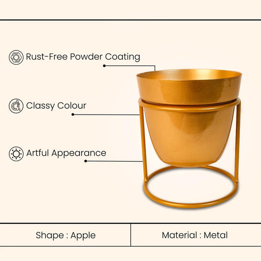 Kuber Industries Planter: Gold Flower Pot with Stand | 17x12x12 cm