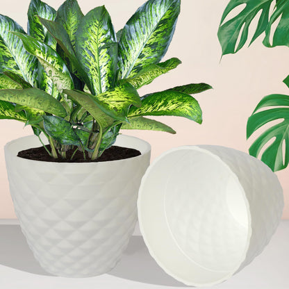 Diamond Flower Pot: White Plastic Flower Planter | 6 Inch | 1 Piece