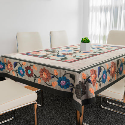 Dining Table Cover: Cotton Table Linen with Brown New Painting | 60x90 Inch | Cream