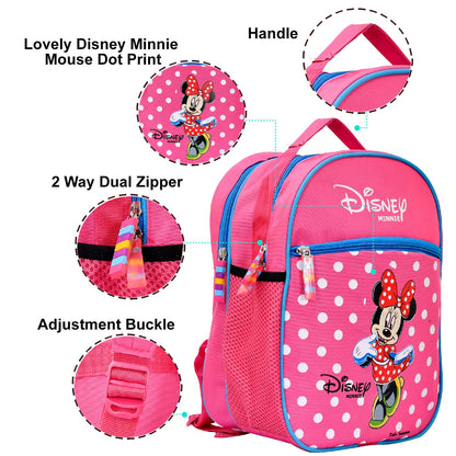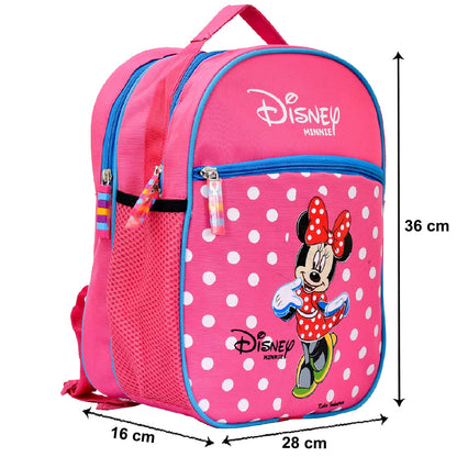 Heart Home Polyester Waterproof Disney Minnie Mouse Dot Print Backpack|Sturdy School Bag For Kids,14 Inch (Pink)