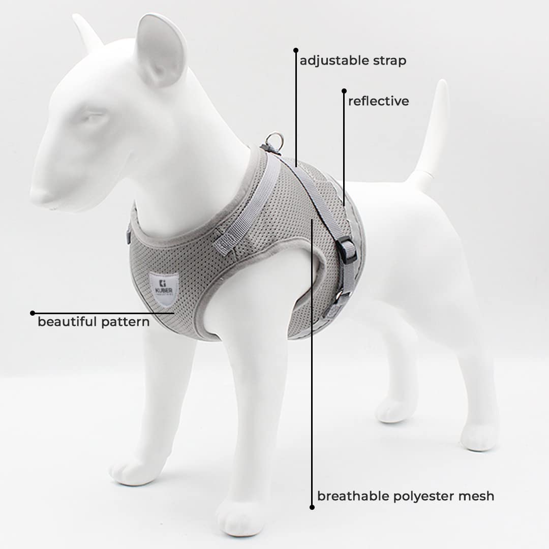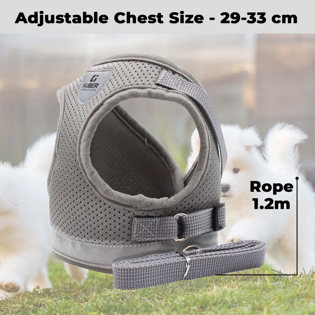 Kuber Industries Dog Harness With Adjustable Leash|Breathable Polyester Mesh Fabric |Small Size|HT-844|Comfortable No-Pull Grip|Quick Release Buckles|Grey