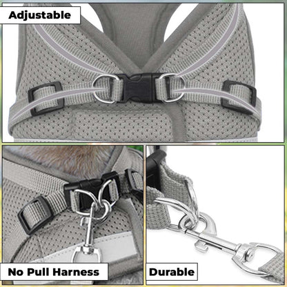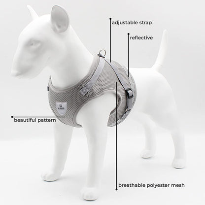 Dog Harness With Adjustable Leash|Breathable Polyester Mesh Fabric |Small Size|HT-844|Comfortable No-Pull Grip|Quick Release Buckles|Grey