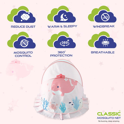 Dolphin Design Baby Mosquito Net - Lightweight, Breathable | 98cm x 55cm x 50cm | Pink