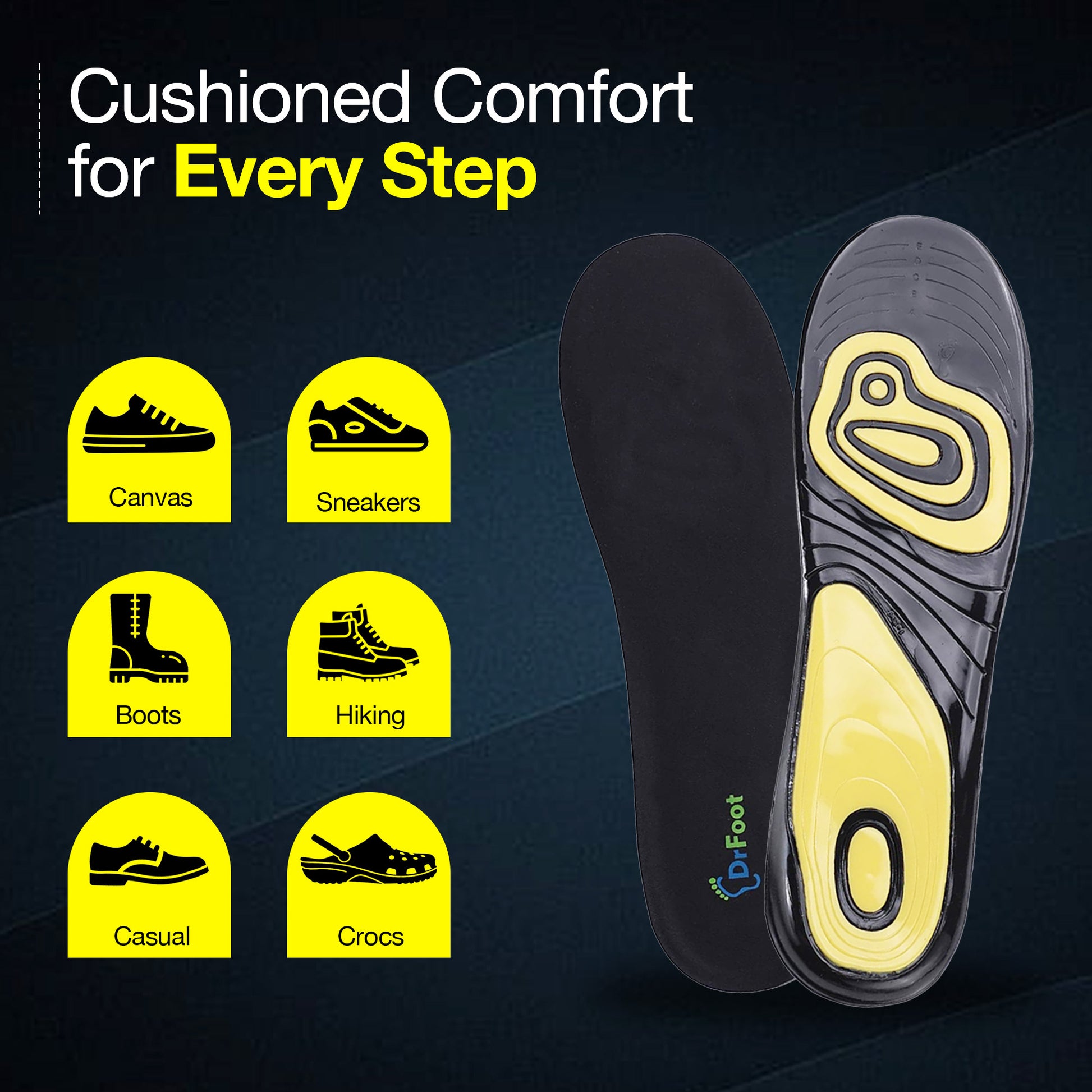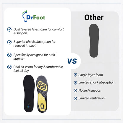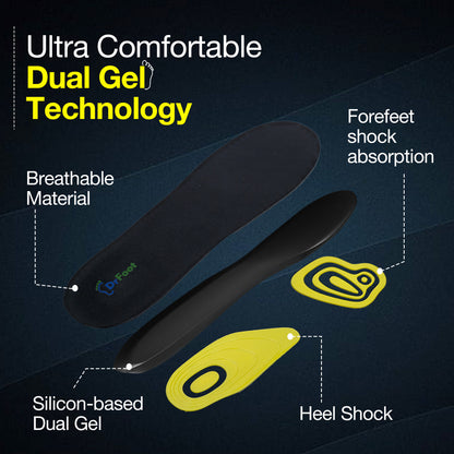 Whether you're an active adult or just looking for more comfort in your daily footwear, the Dr Foot Dual Gel Insoles provide the support and relief you need.
