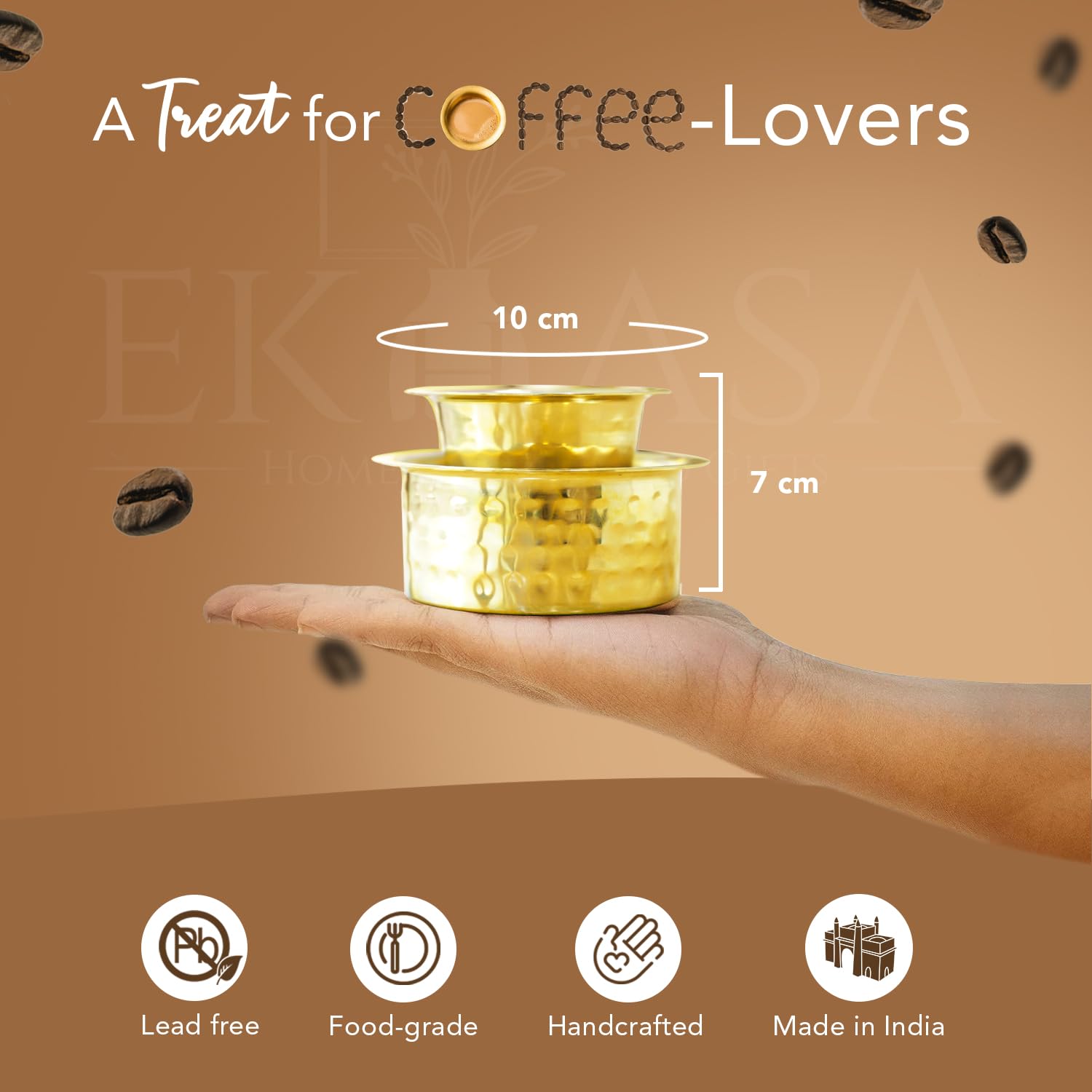 Whether you're a seasoned coffee connoisseur or searching for a unique gift that pays homage to South Indian traditions, the Ekhasa Hammered Dabara Set stands out as a beautiful representation of craftsmanship and utility. Experience the joy of coffee like never before with this exquisite brass set, designed for those who appreciate the finer things in life.